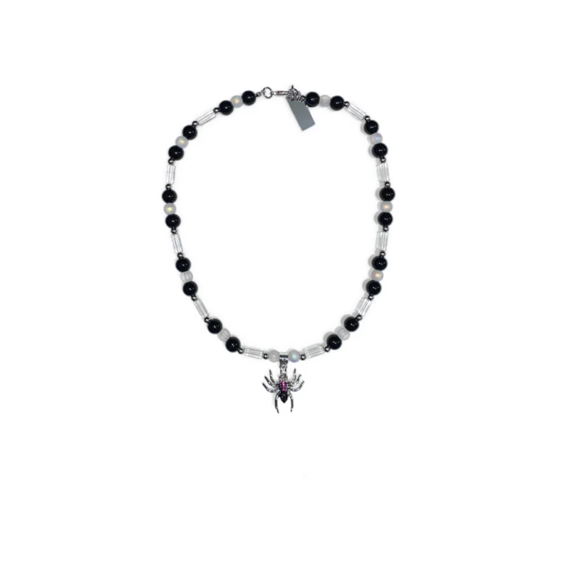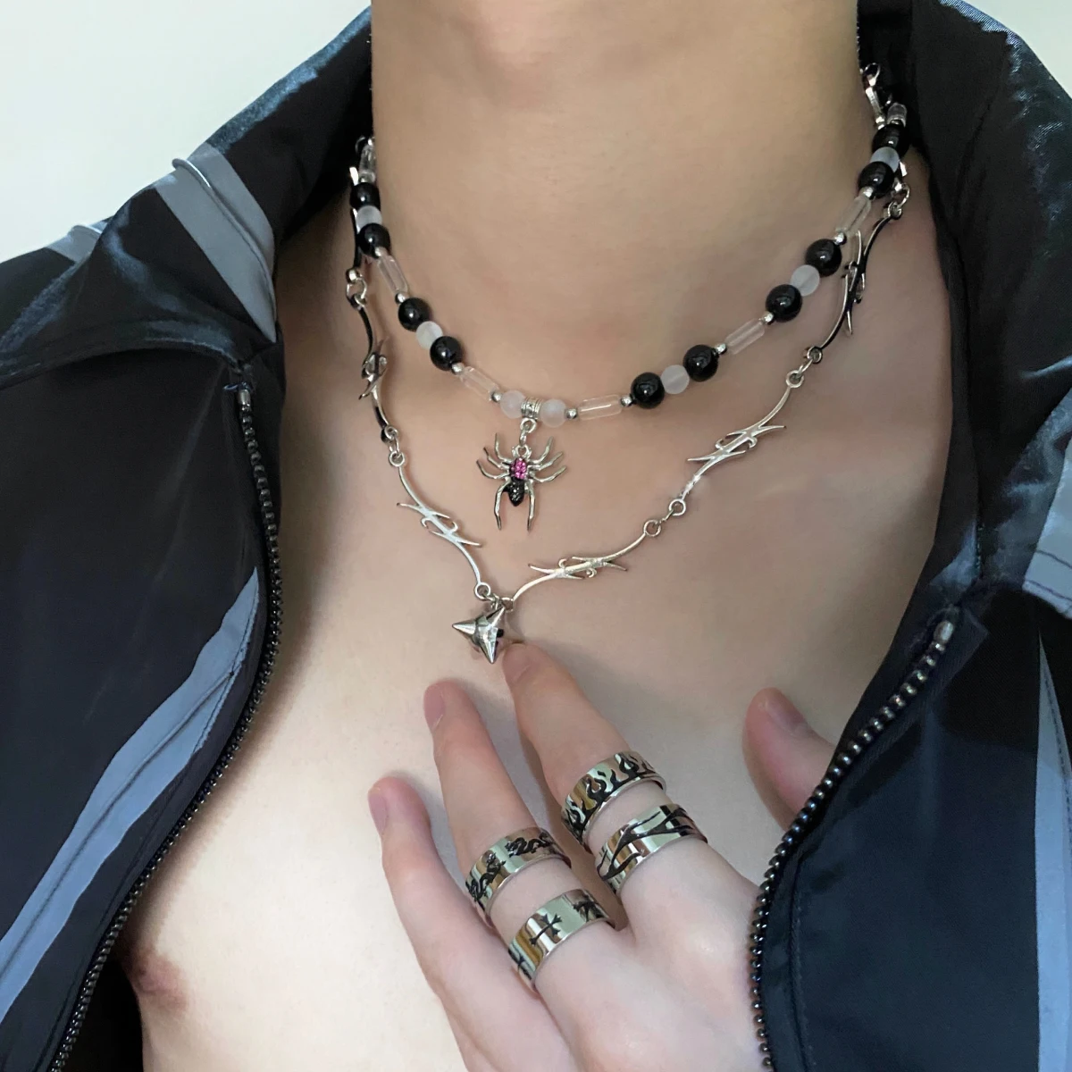HUANZHI 2021 Новинка панк готический черный камень подвеска паука металлическое ожерелье для женщин мужчин парные ювелирные изделия крутые аксессуары для пары