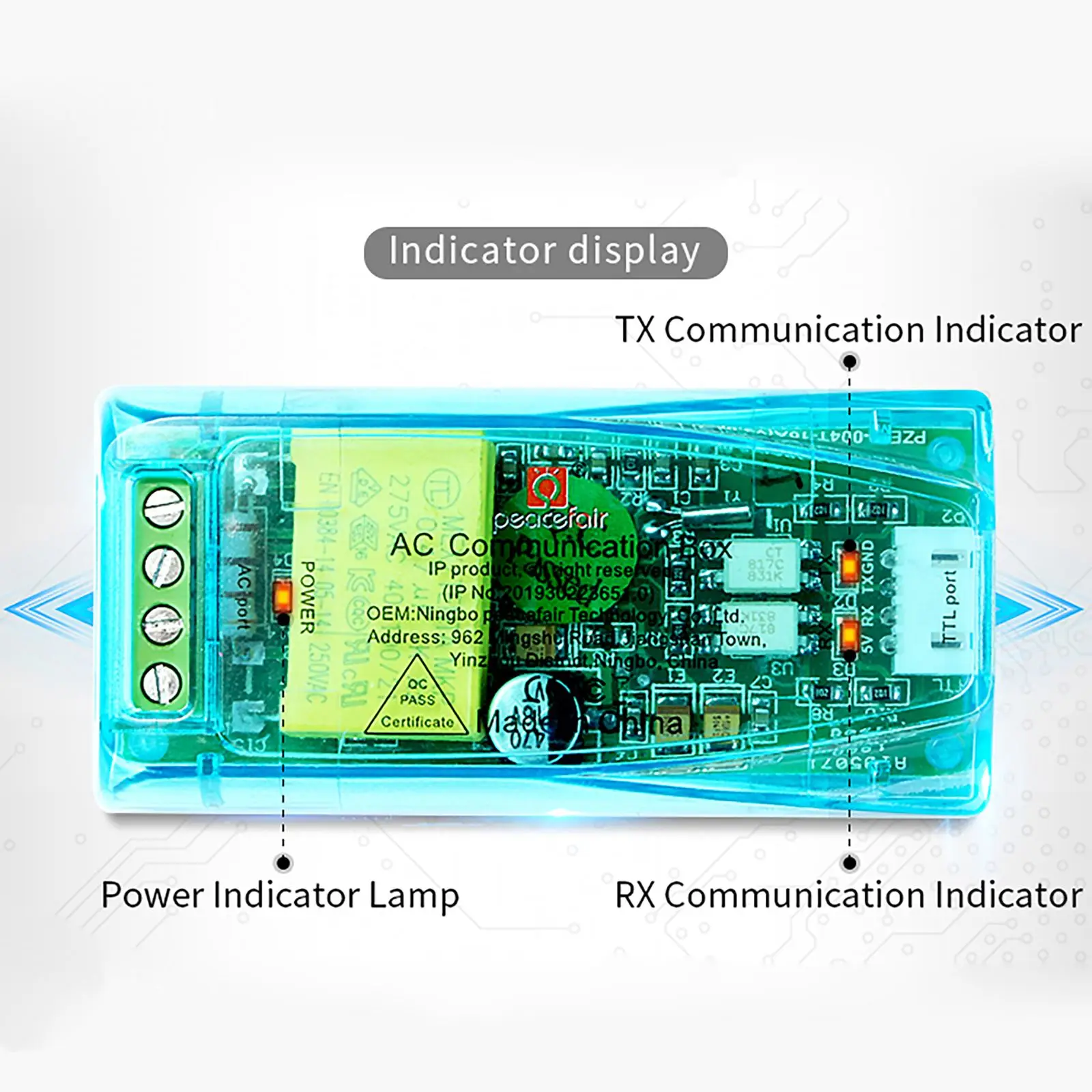 С последовательным интерфейсом TTL, он может общаться с различными клеммами через адаптерную плату, также может читать и устанавливать параметры.