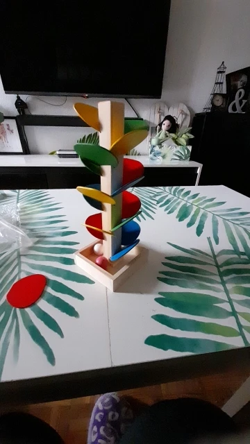 Деревянный шар, трасса, сборные строительные блоки, лепесток дерева...