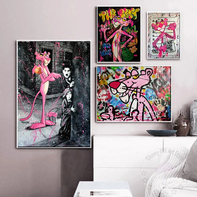 Анимация граффити Розовая пантера постеры Disney Холст Картина принты уличная Настенная картина для гостиной домашний декор куклос