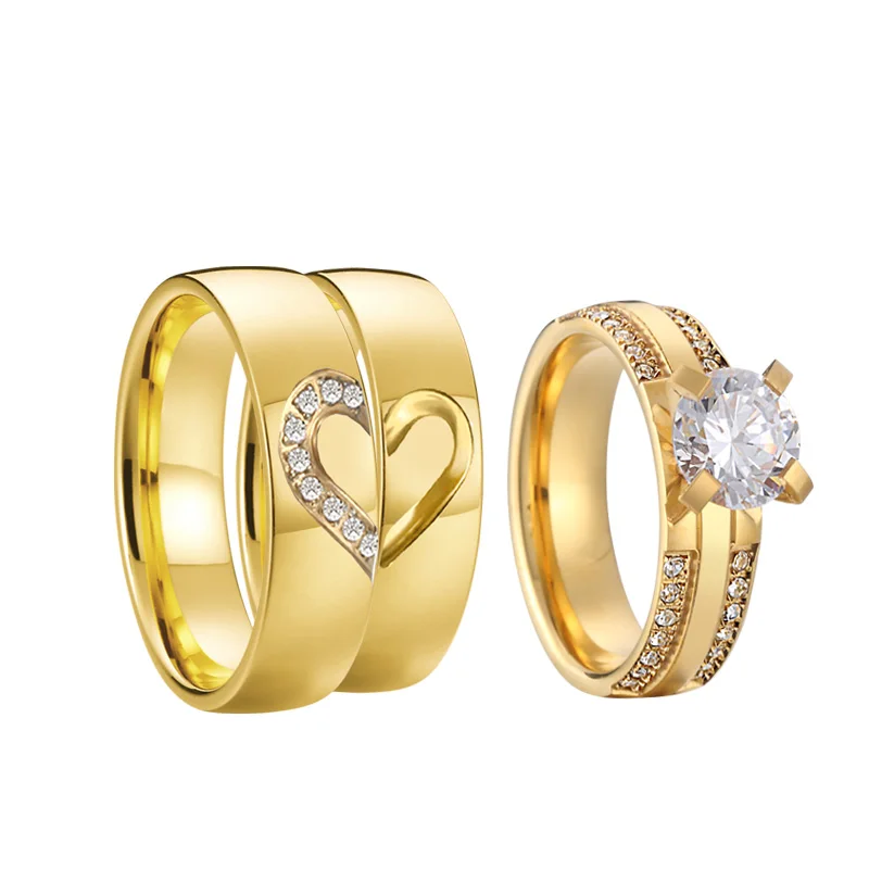 Его и ее невесты 3 шт золотые свадебные кольца на годовщину набор д...