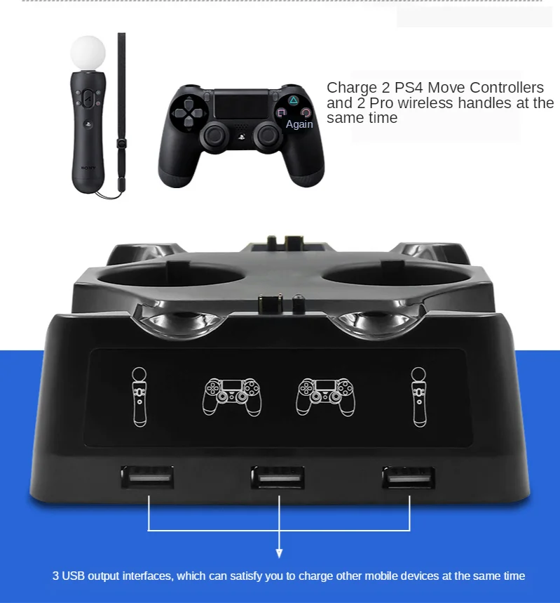 Двойная зарядная док-станция для PS4/PS4 Move/PS4 VR контроллер, зарядное устройство для игр, держатель для док-станции, 4 порта, USB зарядная док-станция, зарядное устройство, базовый держатель, подставка для PS4 для Playstation 4 VR/PS Move контроллер