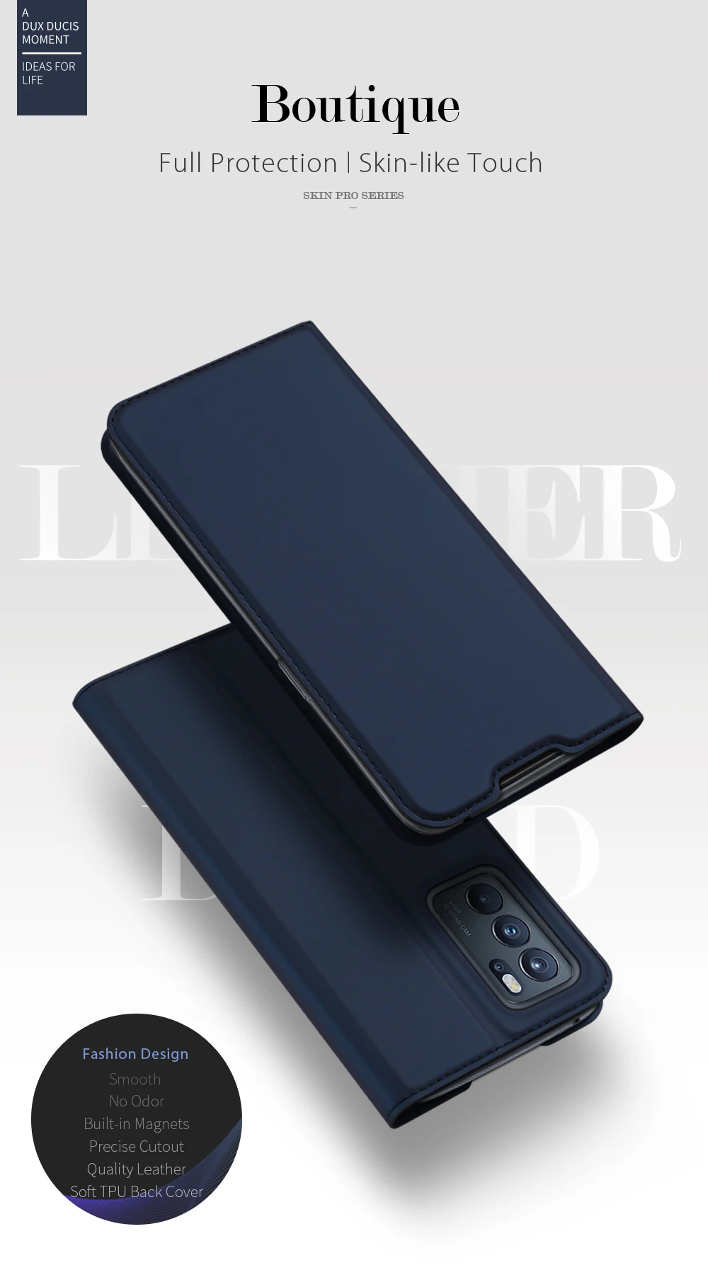 Для OPPO Reno6 Pro 5G чехол DUX DUCIS Skin Pro Series, кожаный чехол-книжка для OPPO Reno 6 Pro, аксессуары для карт