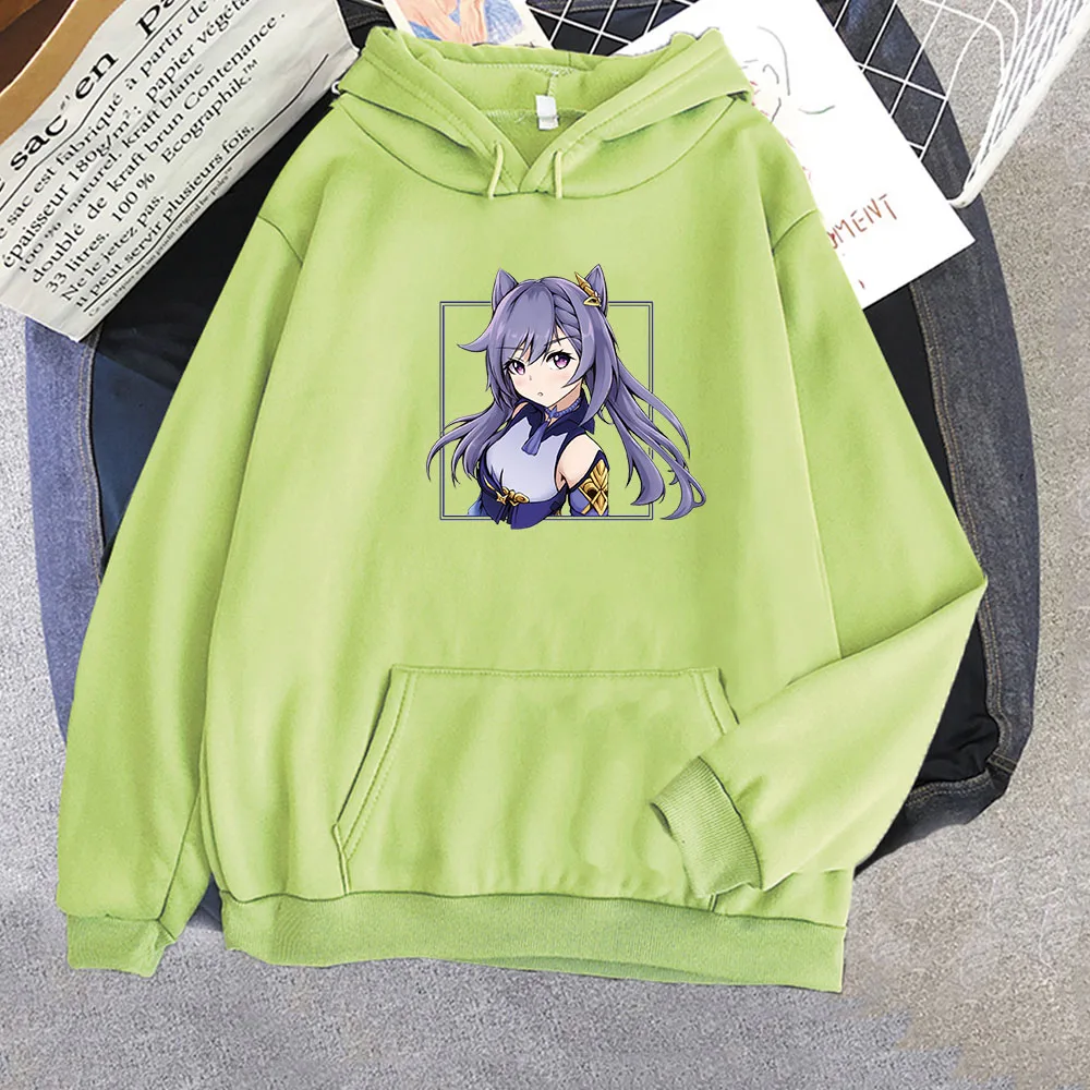Толстовка KeQing с капюшоном Genshin, толстовка большого размера, кавайная эстетичная одежда, Осенние Пуловеры с принтом, корейские Топы в стиле Харадзюку, 2021