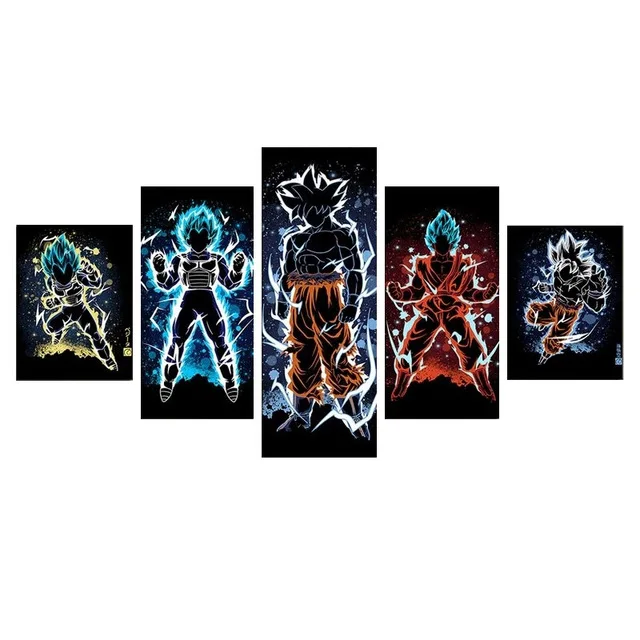Аниме Dragon Ball 5 шт. Холст Картина ультра инстинкт Гоку настенные художественные плакаты картины для гостиной аксессуары для украшения дома
