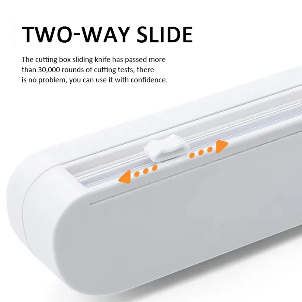 Высокое качество:Изготовлен из АБС-материала, обладает высокой термостойкостью и низкой термостойкостью, прочный, безопасный для здоровья, экологически чистый, нетоксичный, без запаха. Двунаправленный ползунковый резак кнопки, вытащите необходимое количество обертки, вы можете разрезать его слева направо или справа налево ровно без использования опасного ножовочного полотна или ножниц. Маленький резак идеально режет его, не складывается и не прилипает к пластиковой посуде. Может прослужить долгий срок службы для домашнего использования.