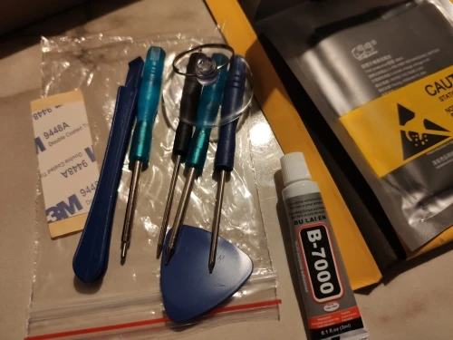 Медленная доставка. Очень доволен инструментами для замены содержимого, включая клей. Не забудьте проверить качество аккумулятора.