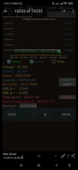 Заявленная ёмкость аккумулятора не соответствует действительности. Замеры показали 3307 mA/h. Надежды на оправдались.