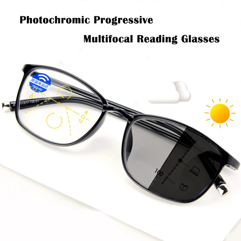 Мультифокальные очки для чтения мужские, сверхлегкие, прогрессивная фотохромная, с защитой от синего спектра, УФ-излучения, гибкие