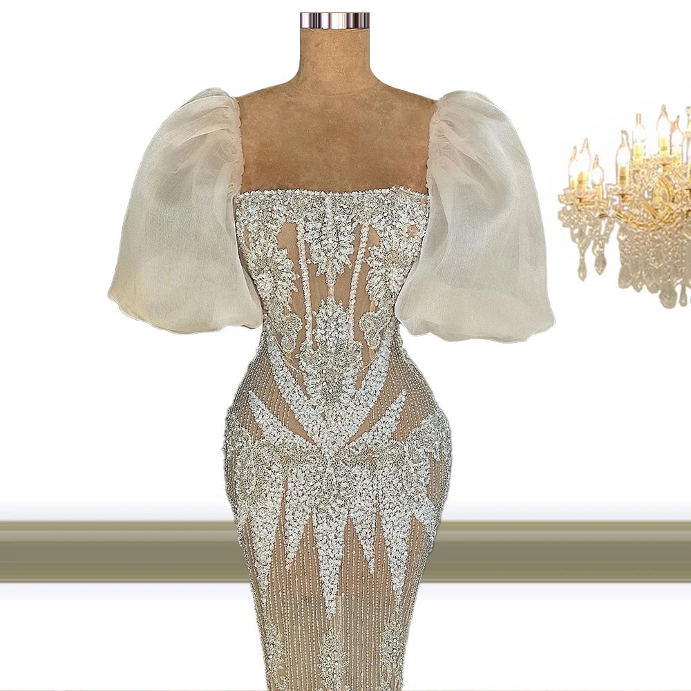 Floria Свадебная вечеринка платье жемчуг Длинные рукава Свадебное п...
