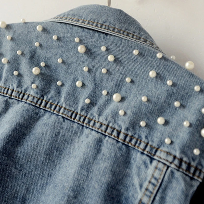 Новинка 2021, весенние джинсовые куртки с жемчугом и бусинами, женские повседневные джинсовые пальто с длинным рукавом, джинсовое пальто в Корейском стиле, большие размеры