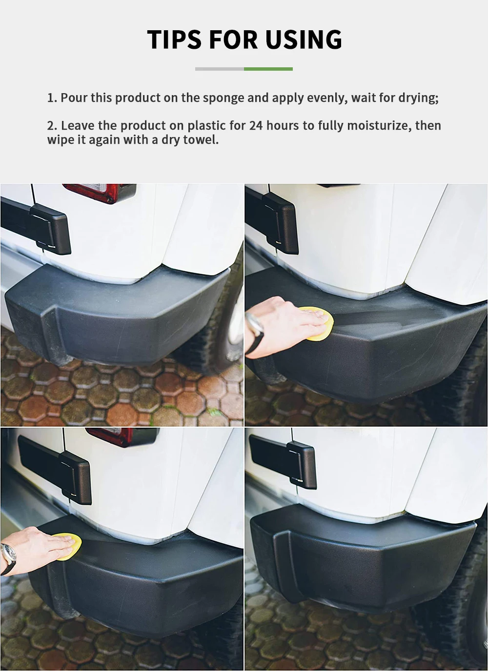 50 мл HGKJ 24 пластиковое покрытие для отделки долговечное гидрофобное наружное пластиковое реставратор стареющий пластик s Аксессуары для автомобильных инструментов Характеристики Товара: Название модели: внешний пластиковый реставратор автомобиля Емкость: 50 мл описание: Для наружной пластиковой отделки гидрофобная самоочищающаяся восстанавливает более черный и яркий, как новый, не смывается просто и быстро, не оставляет кристаллов при протирании, используемых для поверхности пластиковых деталей, которые потеряли черный цвет, яркая текстура, блеск и белизна передний бампер белизнежный, Задний бампер и задний бампер легко оставляют пятна, а зеркало заднего вида стареет гидрофобным/самоочищающимся/долговечным после использования покрытия: 1. Налейте средство на губку и равномерно распределите его, подождите, пока он высохнет; 2. Поместите изделие на пластик на 24 часа, чтобы полностью его намочить, А затем снова протрите его сухим полотенцем. Посылка входит: 1 * Восстанавливающее Средство для пластика