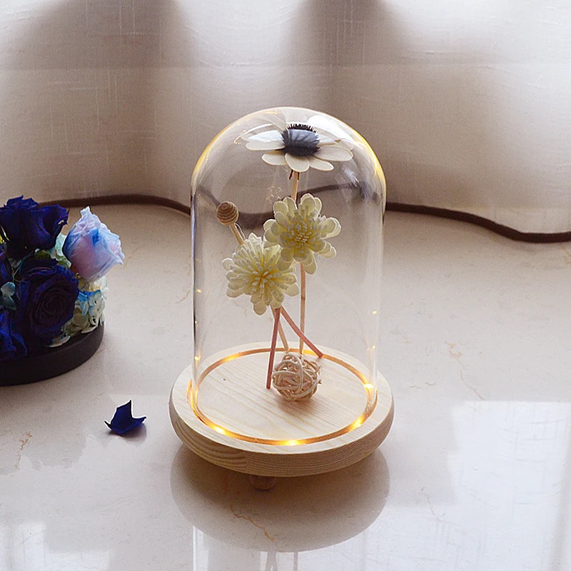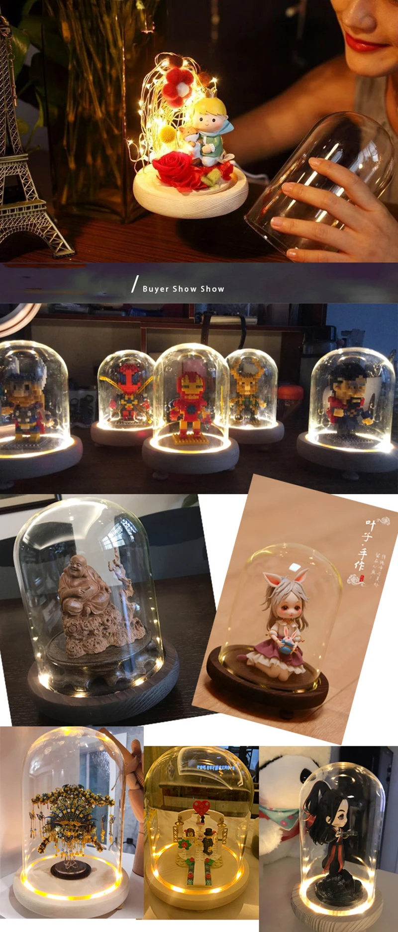Прозрачные вазы стеклянный цветочный дисплей колокол домашний Декор вазы светильник ким ремнем + деревянная основа вечный цветок стеклянная крышка