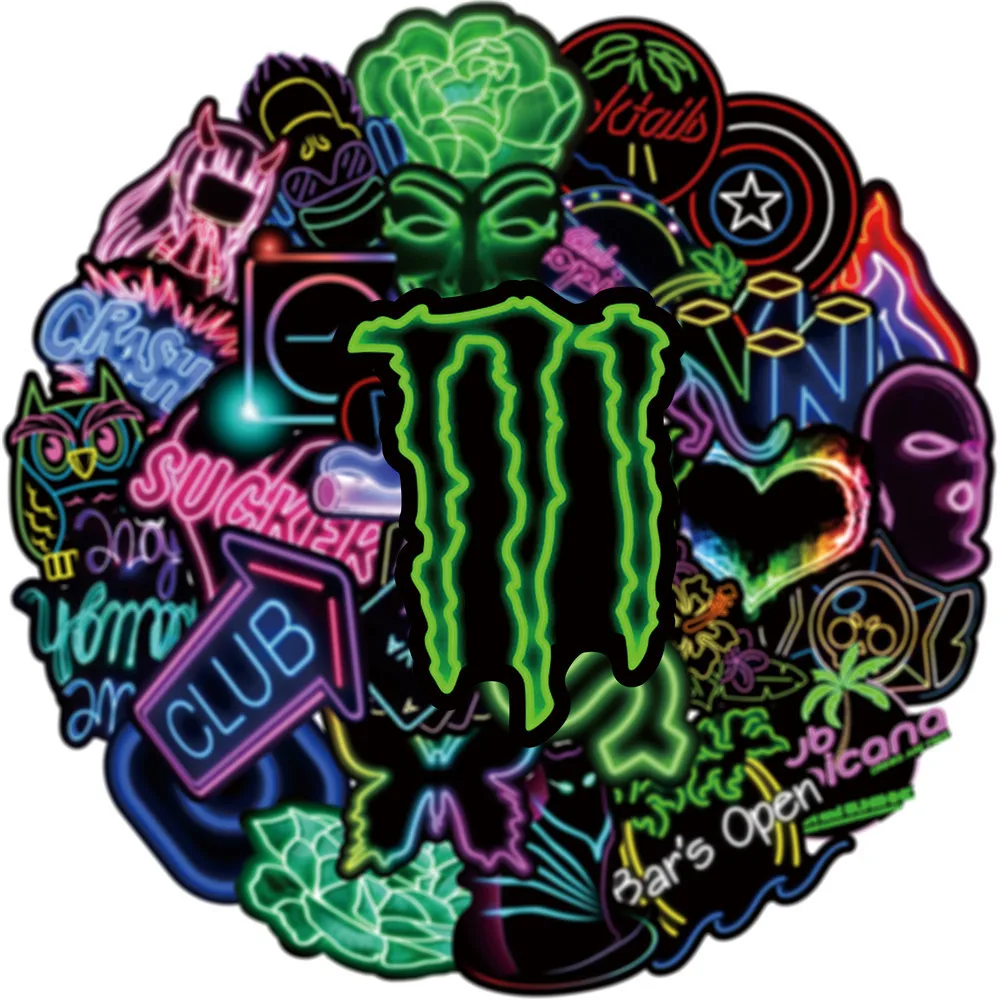 103050 шт. неоновых светильник наклеек в упаковке, Подарочные игрушки, аниме для детей, украшения для гитары, скейтборда, мотоцикла, ноутбука, чехла на колесиках