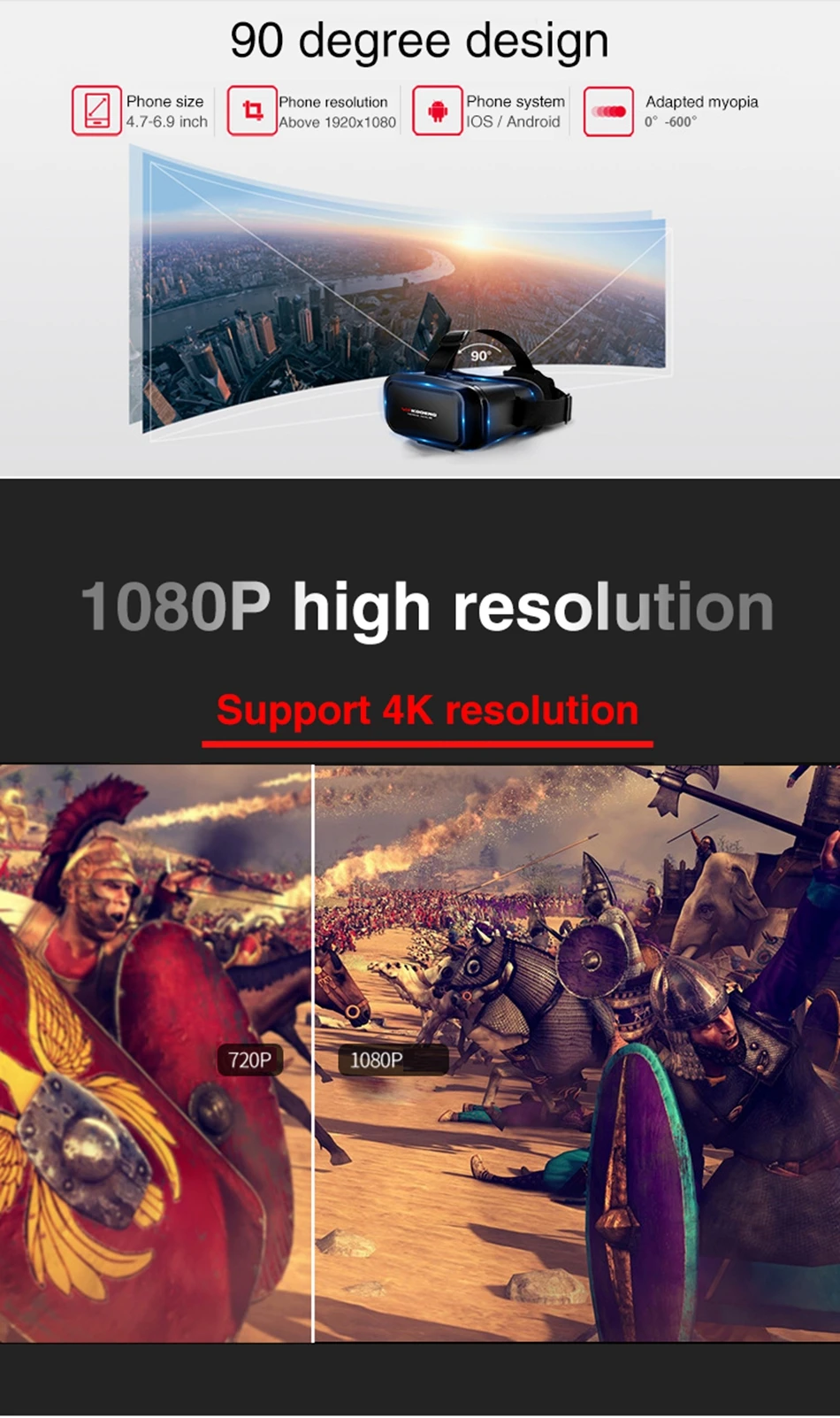 Очки виртуальной реальности с поддержкой 0-600, для IOS и Android