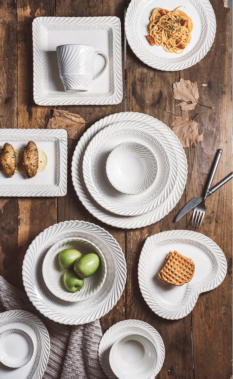 Японские столовые тарелки керамическая печь Mimosa Набор тарелок тарелка для стейка тарелка лоток для салата чашка обеденная ложка тарелка посуда