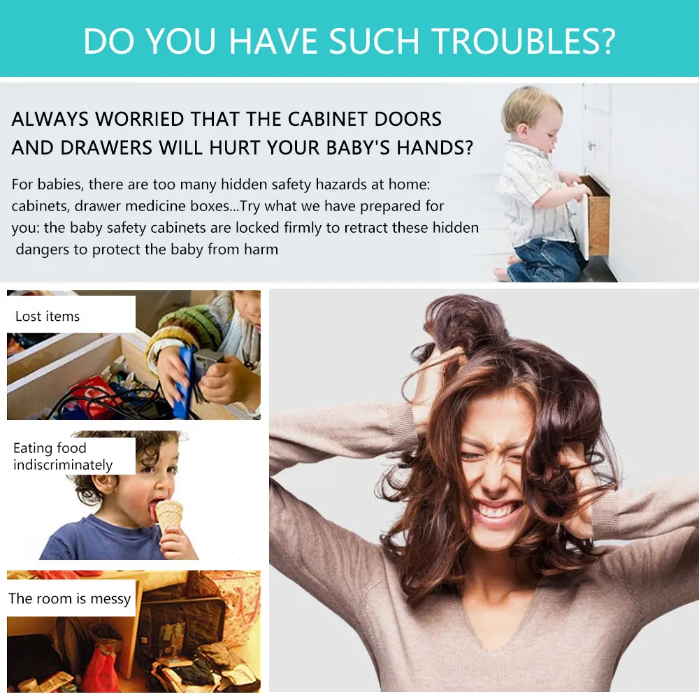 7. Защитите вашего ребенка-замок безопасности вашего ребенка. Защитите свой шкаф от детей и не допускайте попадания пальцев в ловушку. Вы можете использовать его на всех типах поверхностей, мебели и гаджетах, бытовой технике или дверях, шкафах, туалетных столиках, микроволновых печах, барах для напитков, холодильниках, посудомоечных машинах, мусорных баках, туалеты, шкафы, стиральные машины, сушилки и окна и многие другие!