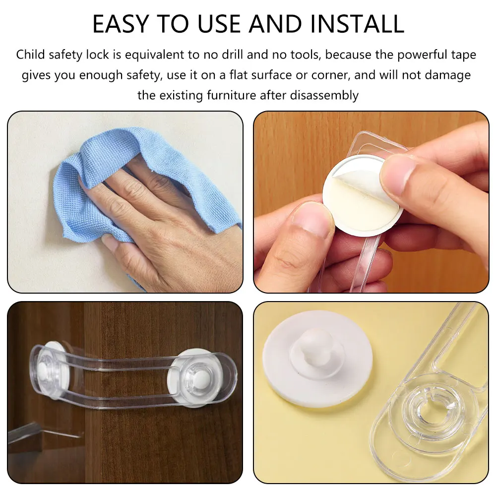 2. Простота использования и установки-замок безопасности для детей равен отсутствию дрели и инструментов, потому что мощная лента обеспечивает достаточную безопасность и безопасность для ваших детей. Используется на плоской поверхности или углу, не повредит существующую мебель после разборки.