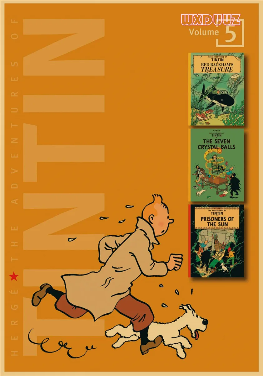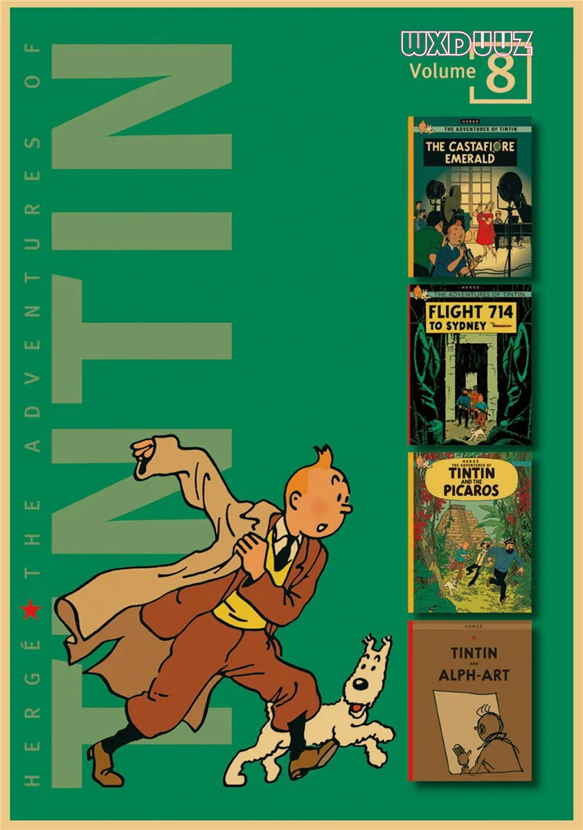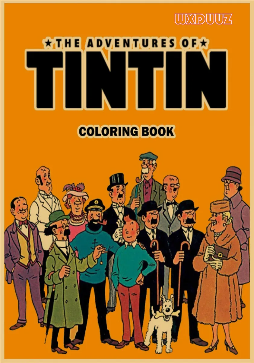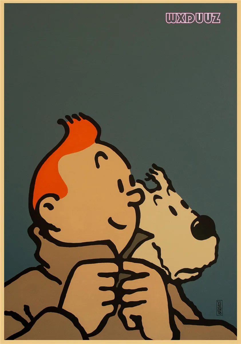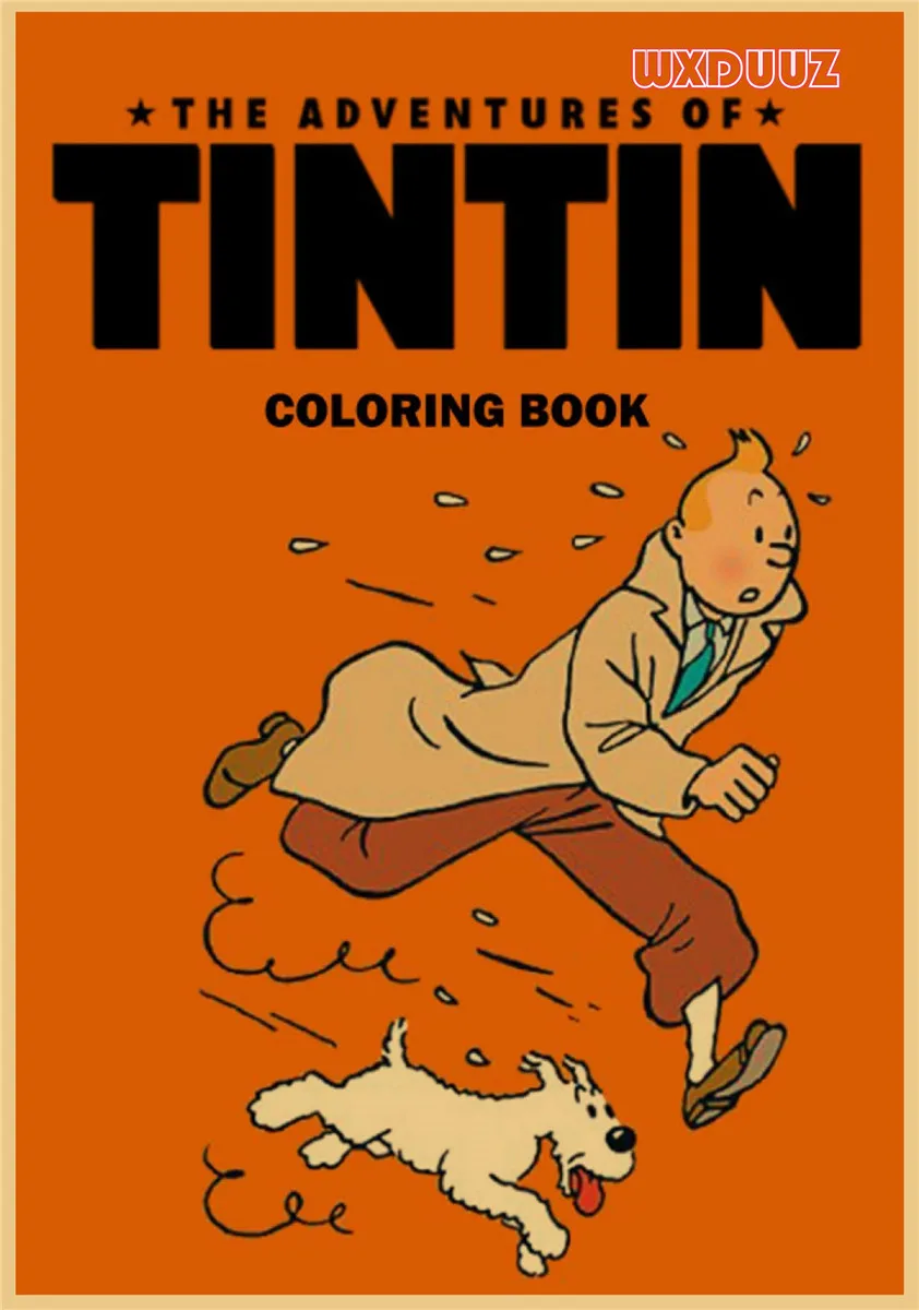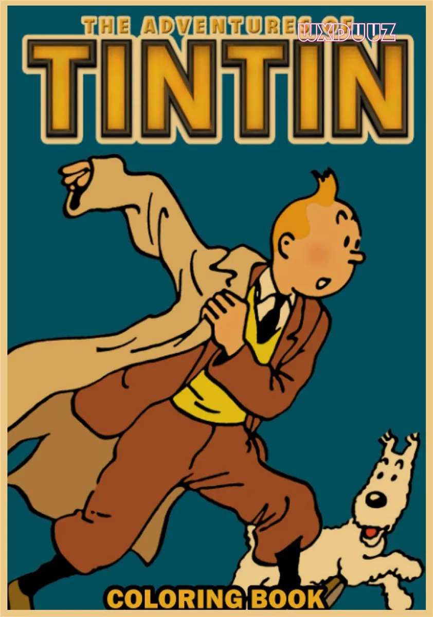 Популярный постер аниме Приключения Тинтина в стиле ретро, постер из крафт-бумаги, украшение для семейной стены, Настенная картина, наклейка на стену A62