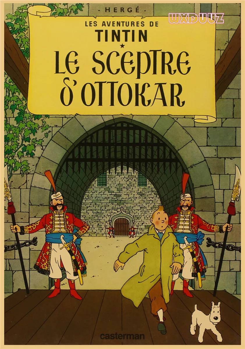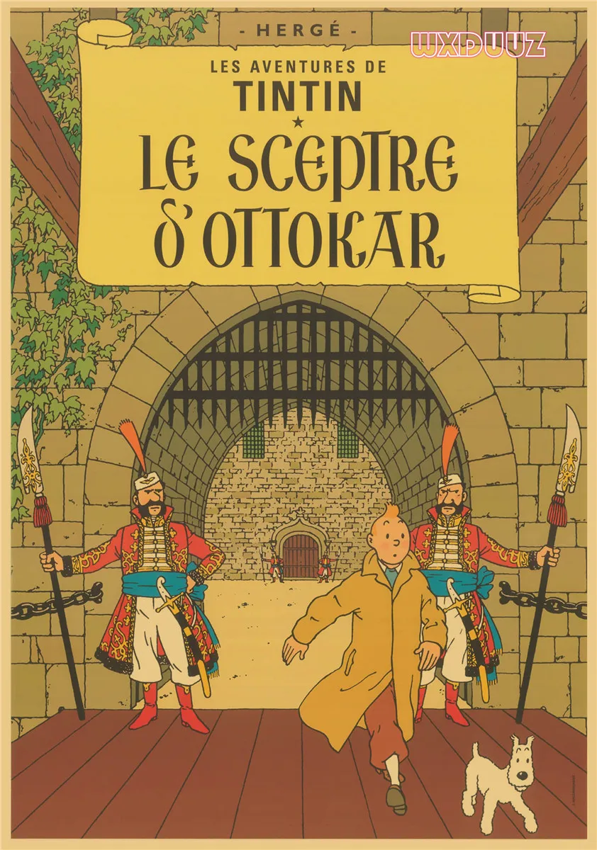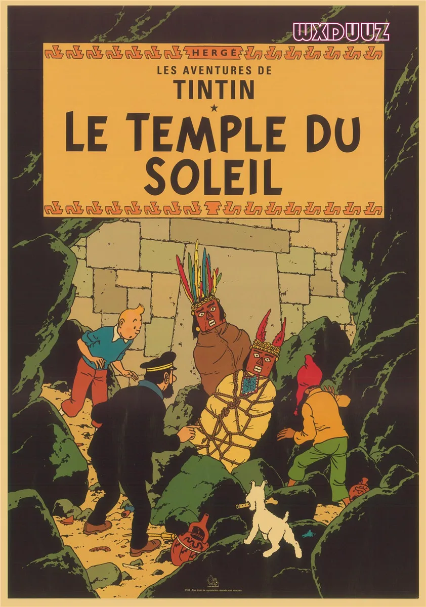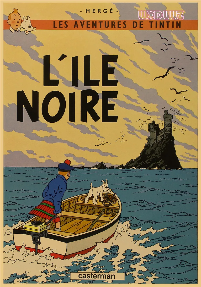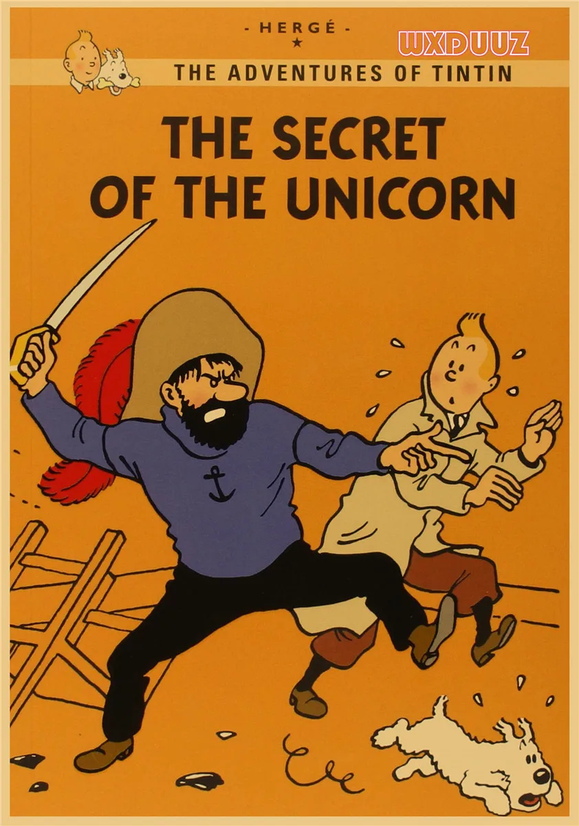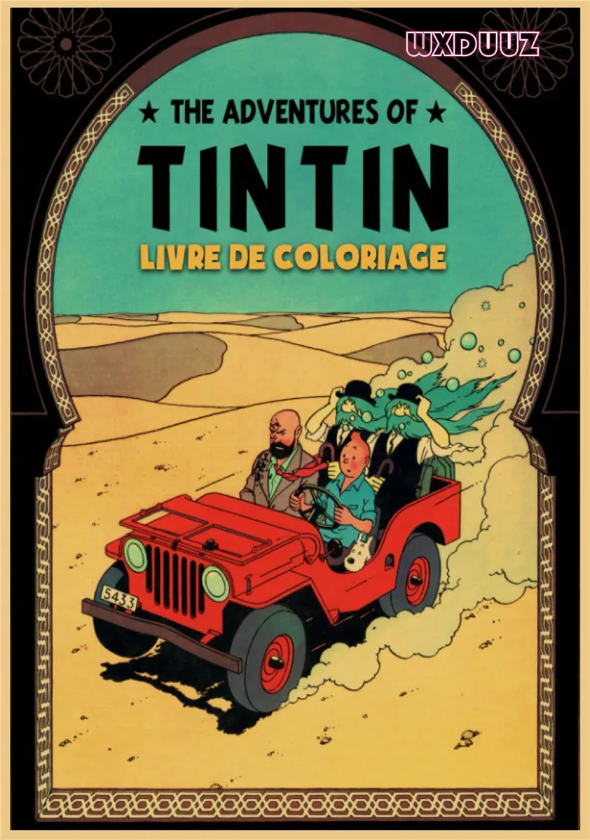 Популярный постер аниме Приключения Тинтина в стиле ретро, постер из крафт-бумаги, украшение для семейной стены, Настенная картина, наклейка на стену A62