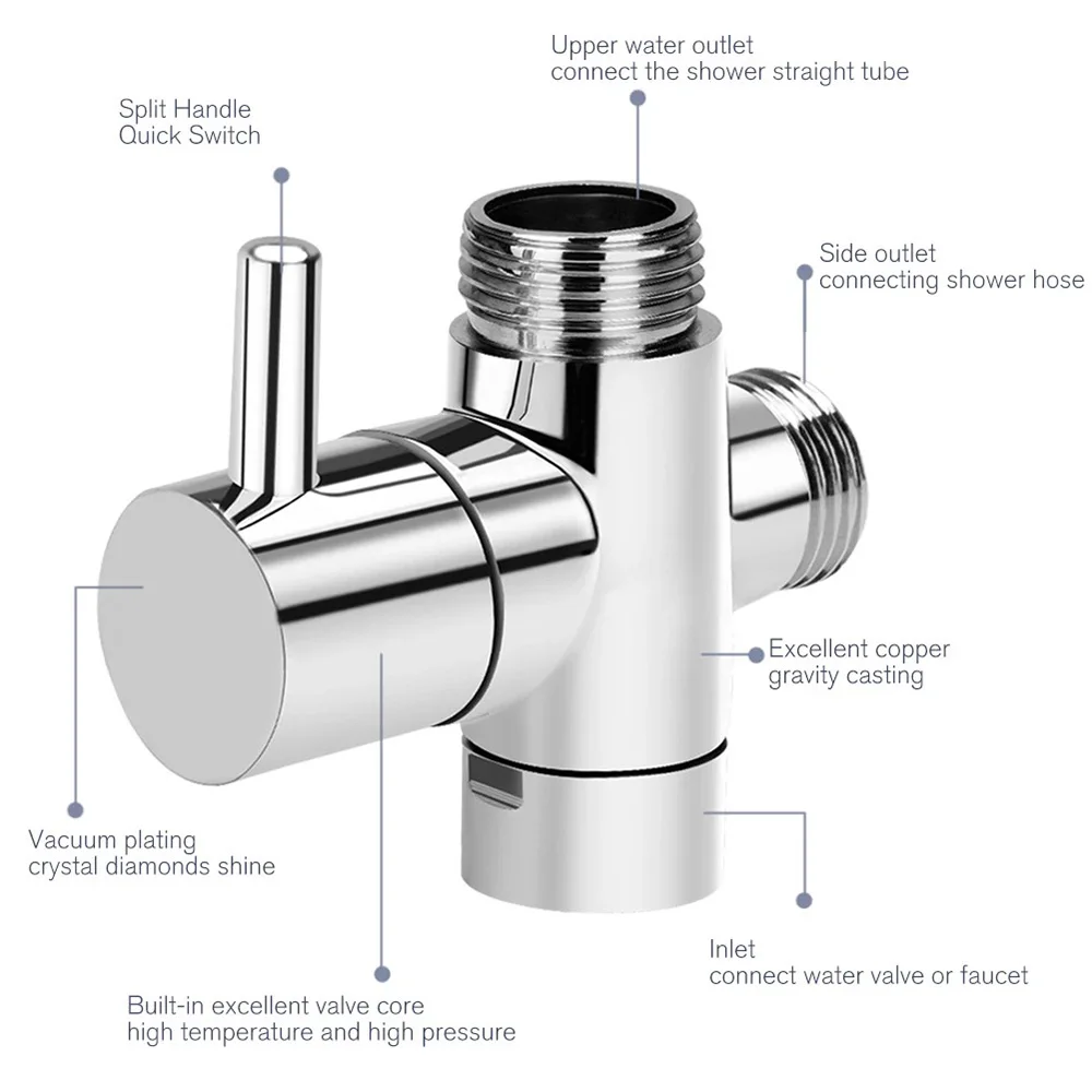 3-ходовой 1/2 клапан, смеситель для душа для ванной комнаты, делитель воды клапан для душа, отводящий клапан для душа, насадка-распылитель, адаптер, конвертер, смеситель для воды