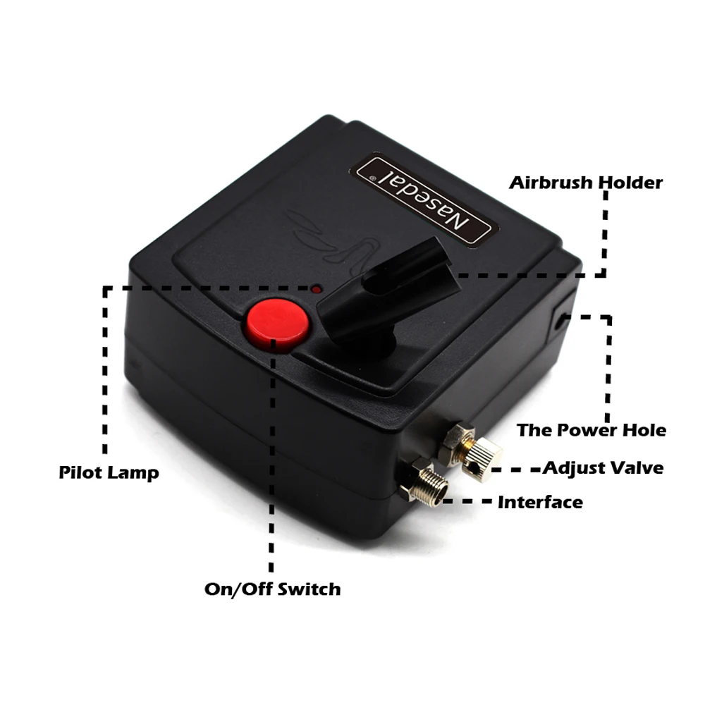 Этот мини-компрессор использует специальную конструкцию без масла. Это не масло делает среднюю передачу не загрязненной. Выходная жидкость устойчива и диапазон давления от 0 до 25 фунтов на квадратный дюйм. Этот профессиональный комплект воздушного компрессора airbrush широко используется в производстве моделей, украшении тортов, татуировках, Нейл-Арте и т. д. Идеально подходит для художественных работ, красоты ногтей, боди-арта, дизайнерской живописи, модельной живописи, украшения тортов, ремесел, моделей и изобразительного искусства, таких как рисование автомобиля, текстиль и футболка. Особенности: Включает в себя портативный воздушный компрессор, воздушный шланг, двойного действия гравитационный питательный Аэрограф, мини воздушный фильтр, держатель, гаечный ключ и капельница. Профессиональный набор Аэрограф Двойного действия с гравитационным питанием для хобби красок. Аэрограф для изготовления моделей, украшения тортов, нарисуйте контур камуфляжа, татуировки гвоздь и т. д. Довольно и прочный мини воздушный компрессор, портативный светильник, вес и легко носить с собой. Экономьте гораздо больше времени, чем Рисование ручной работы, и отлично подходит для вашего бизнеса с распылителем. Конструкция двойного действия экономит сырье и долговечность. Широко используется энтузиастами общей модели. Держатель аэрографа 360 ° для удобного использования аэрографа. Характеристики: Цвет: серебристый + черный Материал: алюминий + медь + резина + нейлон + пластик Вход: 100-250 В пер. тока, 50/60 Гц, 0.6A Max Выход: 12V, 1.6A Выход воздуха в минуту: 10 ЛПМ Тип штепсельной вилки: Европейская штепсельная вилка/штепсельная вилка стандарта США/Великобритания/Австралия (опционально) Максимальное давление: 25psi Диаметр сопла: 0,3 мм/0,011 Емкость стакана жидкости: 7cc / 0.43cu in Диаметр шланга: 1/8" Воздушный шланг Длина: 1,8 м/5.9ft Воздушный компрессор Размеры: 11,5*11*5,7 см/4,5*4,3 * 2.2in Аэрограф Размеры: 14,7*2,8*8,5 см/5,8*1,1 * 3.3in