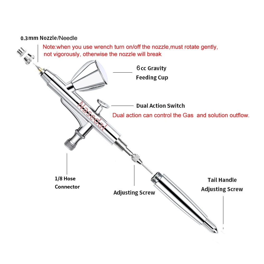 1 * регулируемый Быстрый шарнир (только NT-59B-5 в комплекте) 1*0,2 мм сопло и игла (только в том случае, NT-59B-5 входит в комплект) 1*0,5 мм сопло и игла (только в том случае, NT-59B-5 входит в комплект)