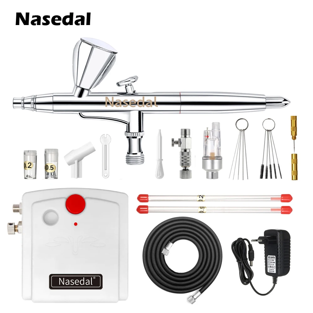 Nasedal NT-59 двойного действия Аэрограф компрессор комплект 0,3 ММ Аэрограф распылитель для ногтей фотография торта автомобиля рыбы обуви живописи