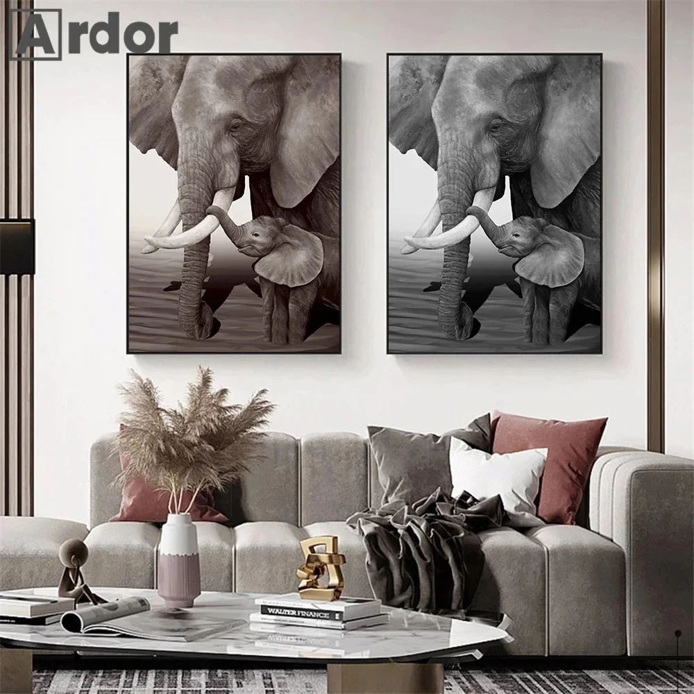 Животные, альпака, слон, Зебра, постер с животными, черно-белые кар...