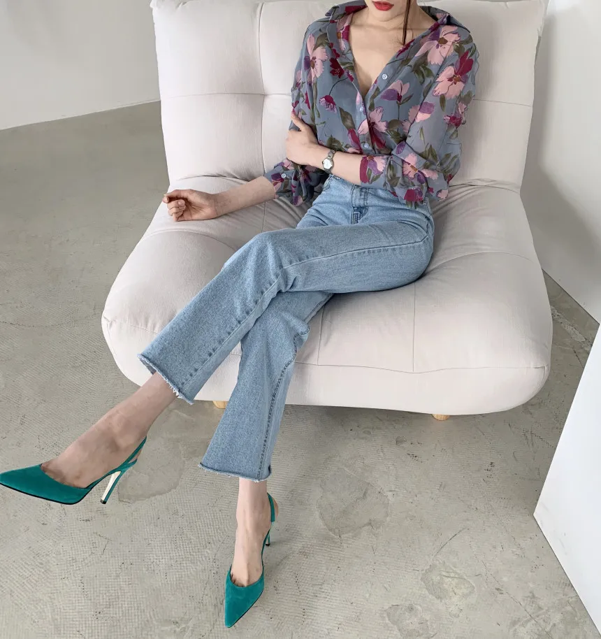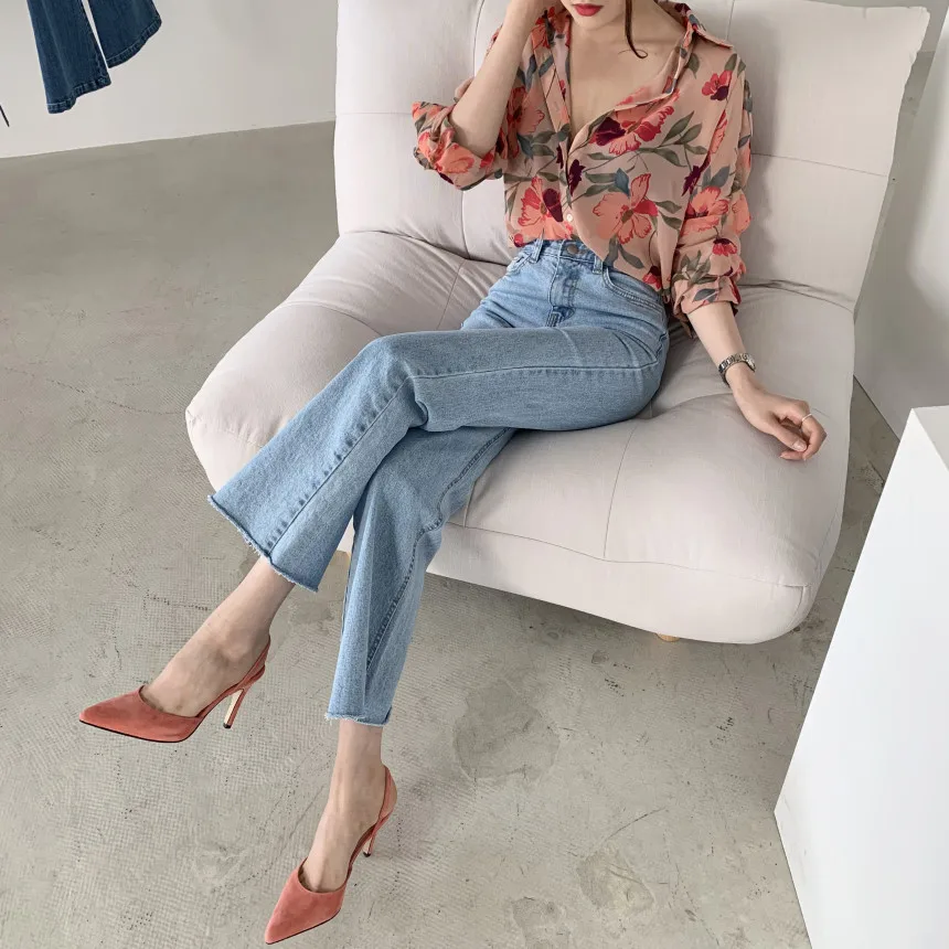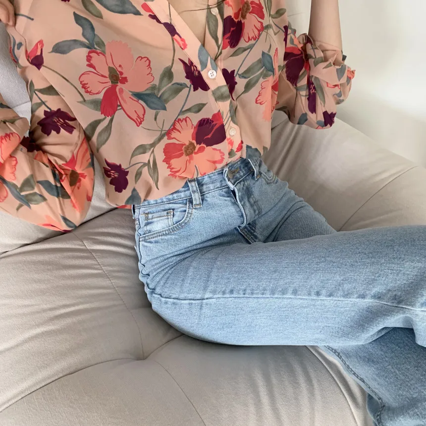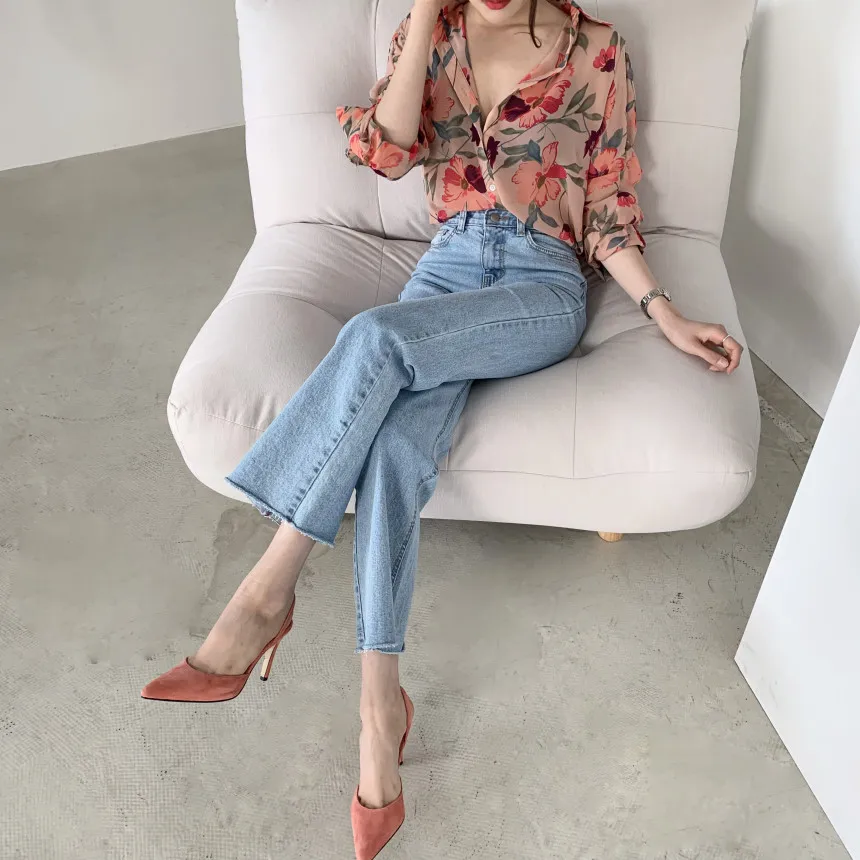 Модная шифоновая блузка с цветочным принтом, рубашка, свободные топы на пуговицах, футболка, повседневный летний женский пуловер с длинным рукавом, новинка 2021