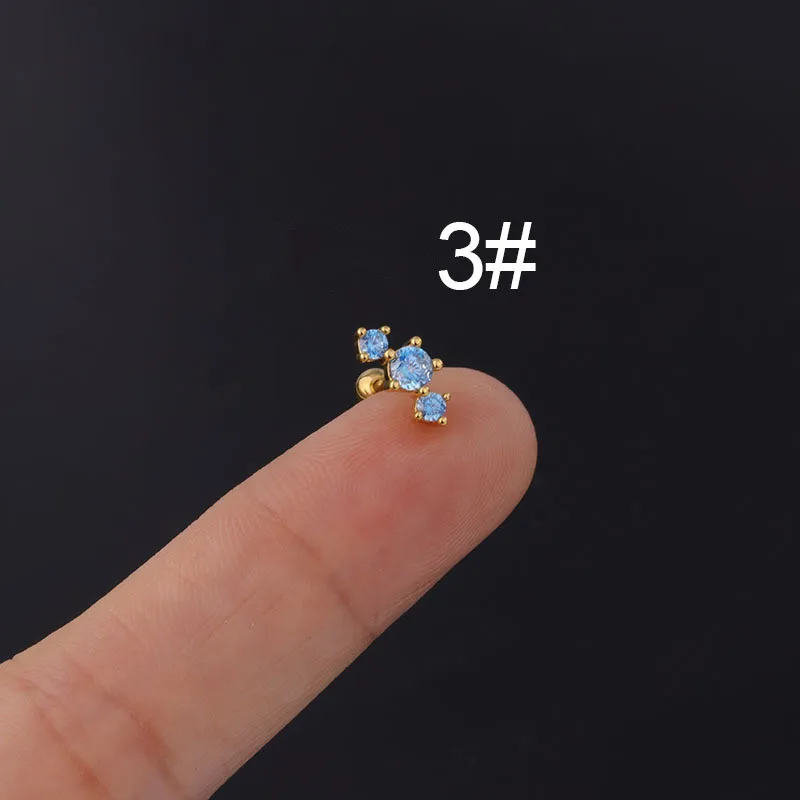 Серьги-гвоздики женские, с цирконом, круглые, красные, синие, разноцветные, 1 шт.