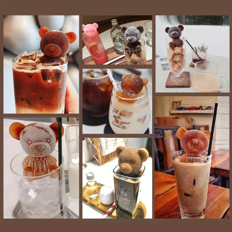 3D кубики для льда, креативный поднос в форме маленького медведя, собаки, кубики для виски, вина, коктейля, льда, кофе, молока, чая, кубики для льда, инструменты для мороженого
