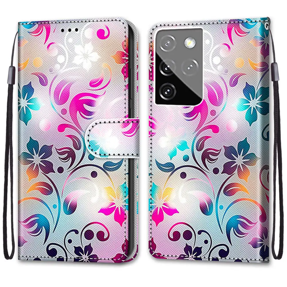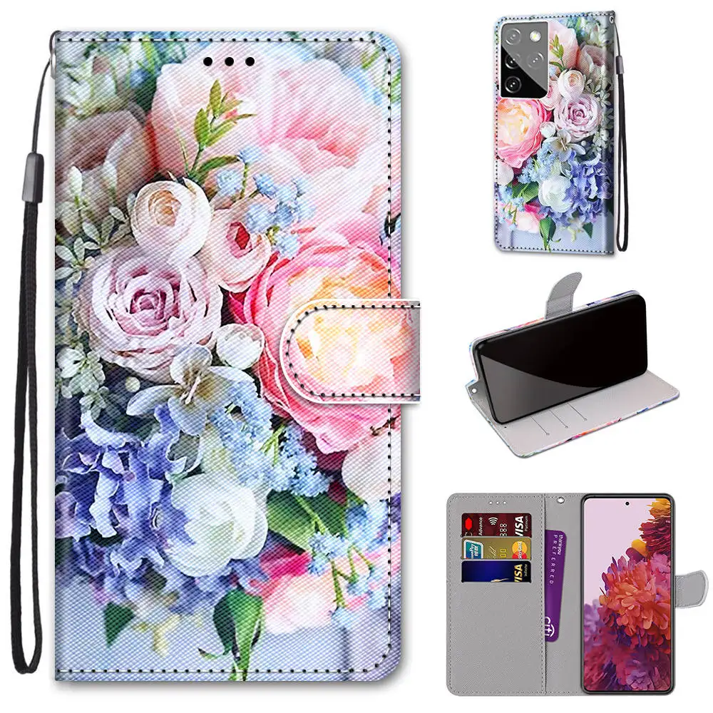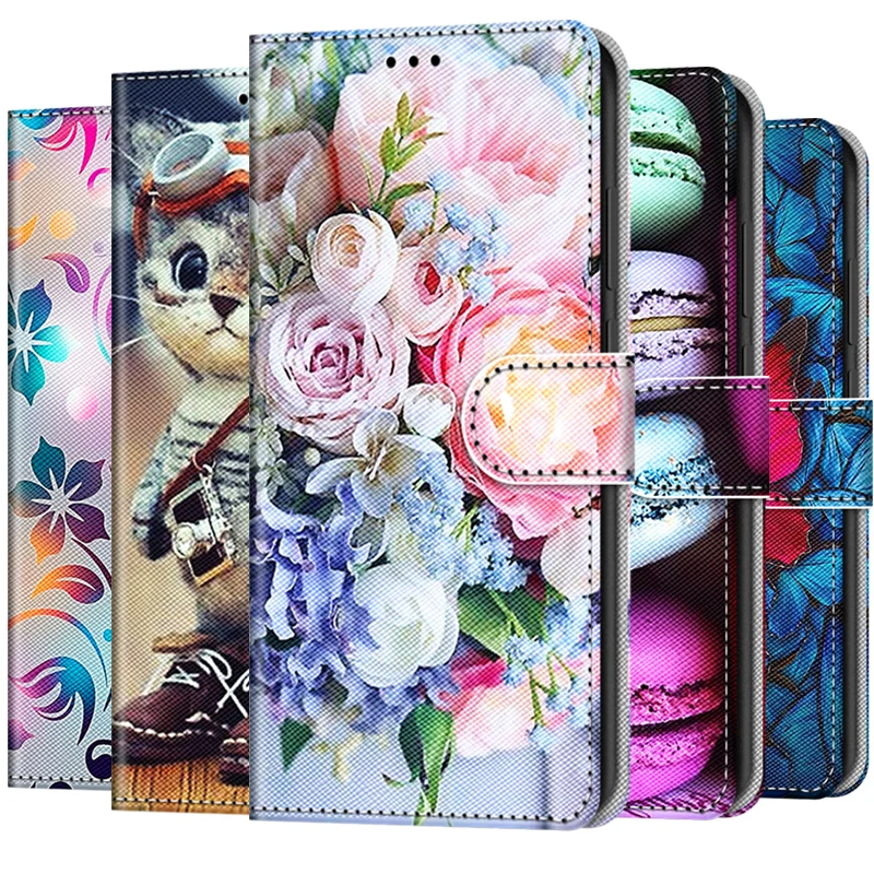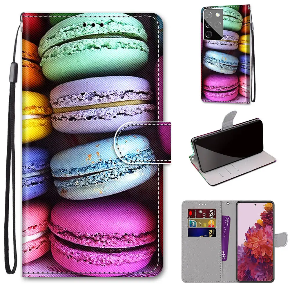 Кожаный чехол-книжка с изображением цветов Макарон Для Samsung Galaxy J4 J6 S9 S10e Plus S20 FE S21 Ultra M31S J3 J5 J7 2017 J530F