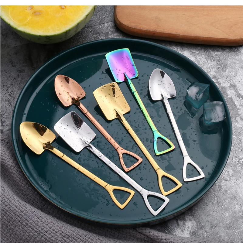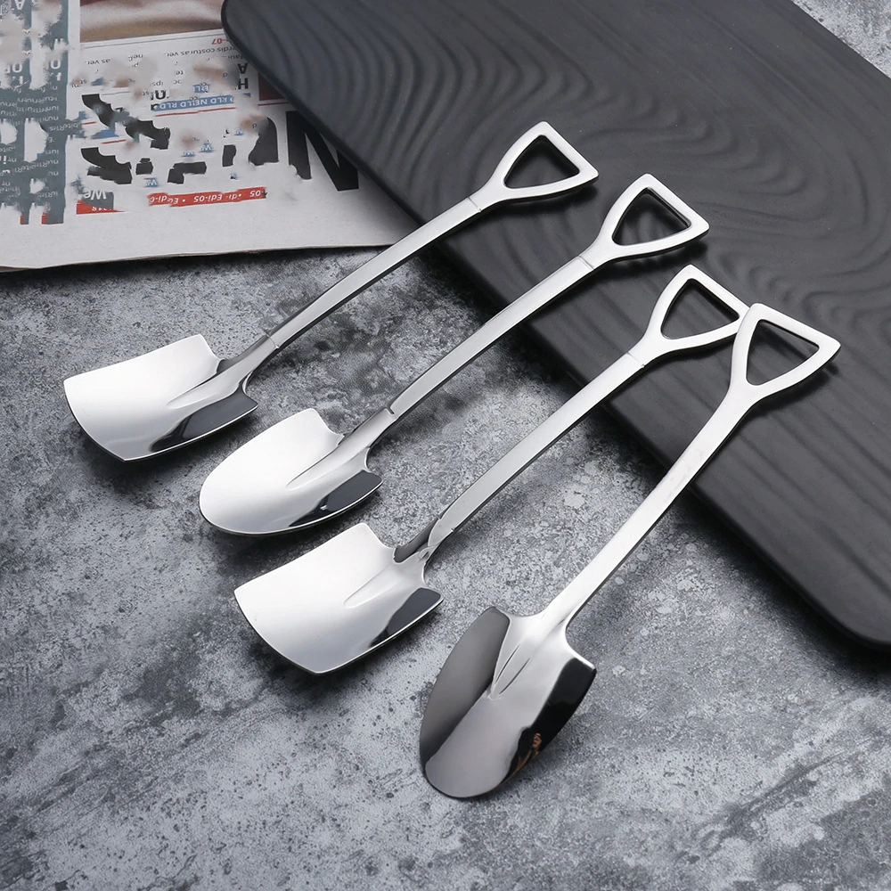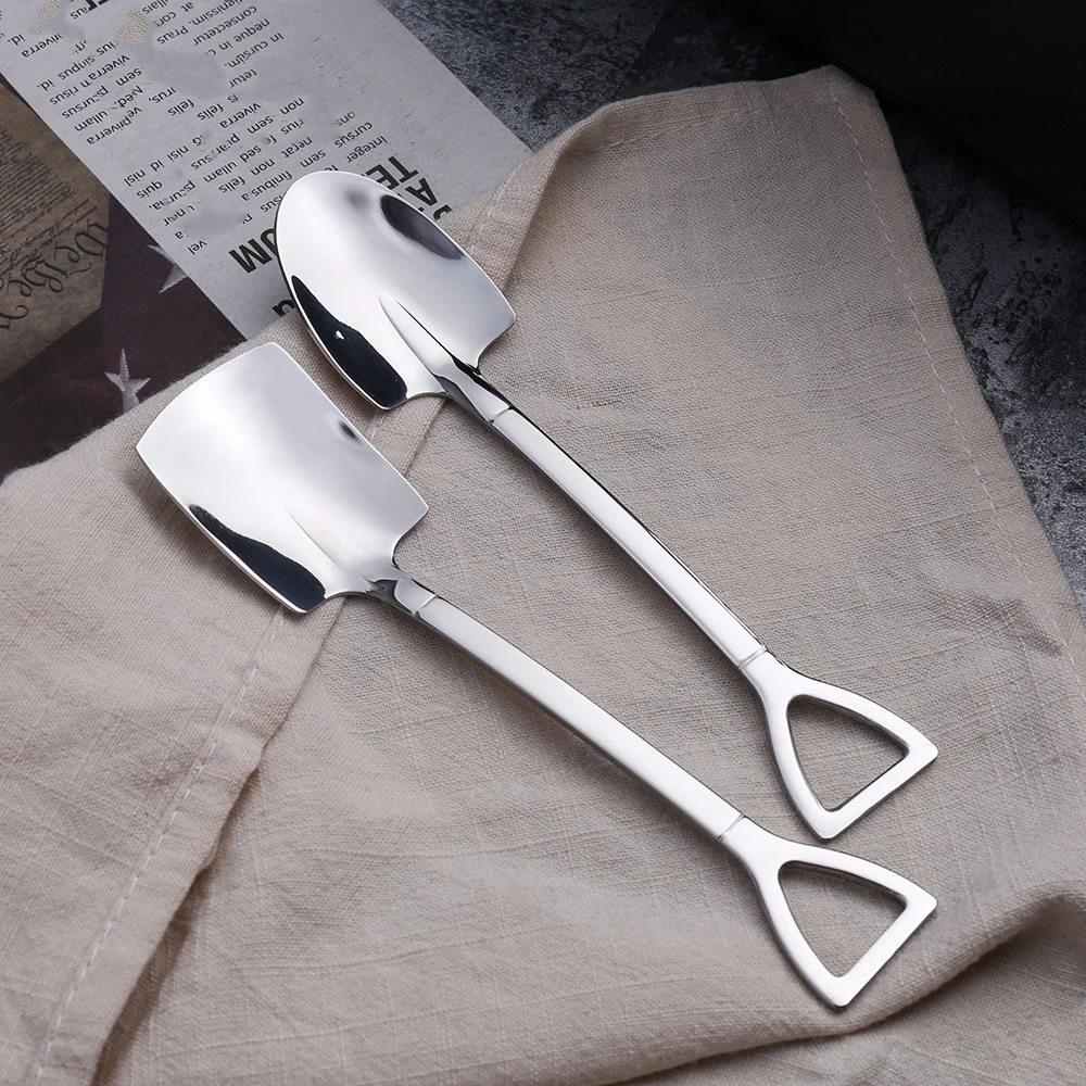 Ложка из нержавеющей стали с железной лопатой, кофейная ложка для мороженого, инженерная лопата, Ретро Милая ложка с квадратной головой, кухонный гаджет