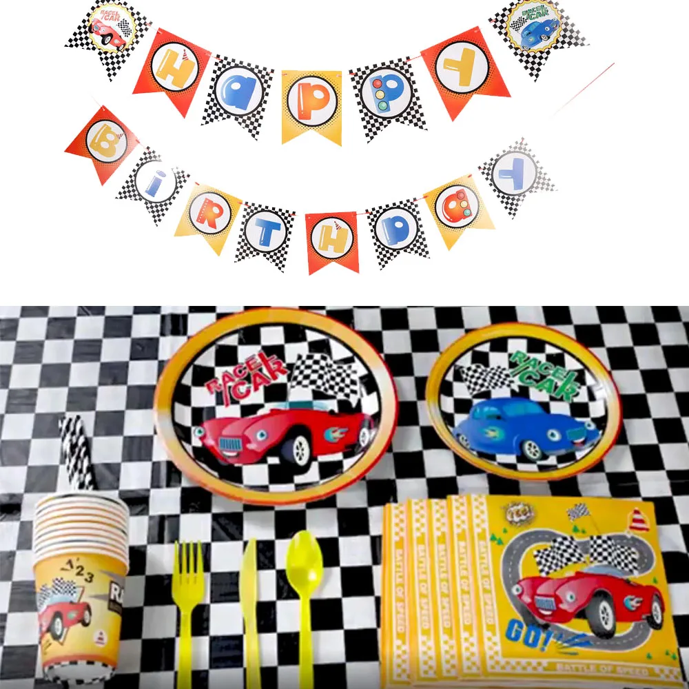 Мальчик гоночный автомобиль День рождения партия гонка тема однораз...