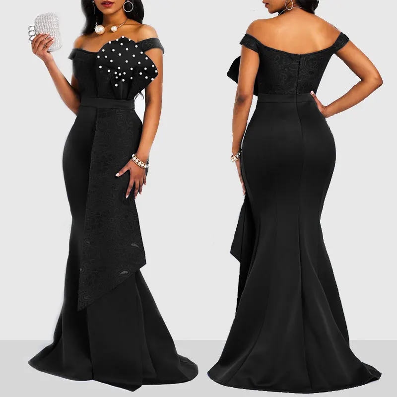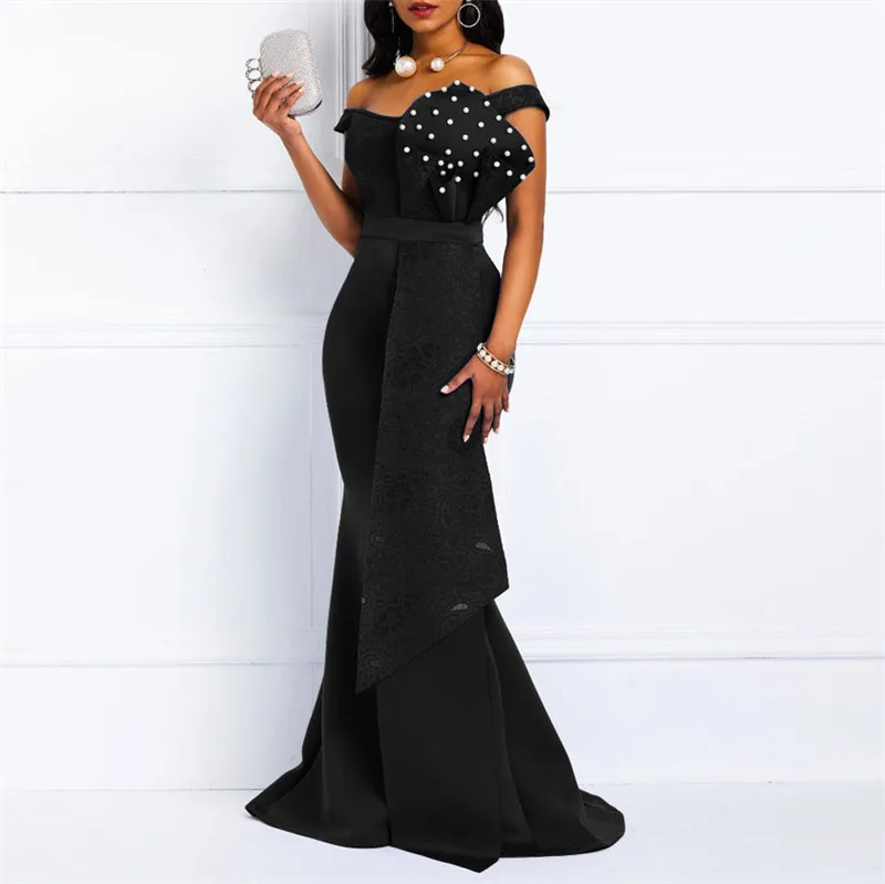 Женское вечернее платье с открытыми плечами, элегантное платье-лиф с драпировкой и вышивкой, длиной до пола, от S до Xxxl, 2021