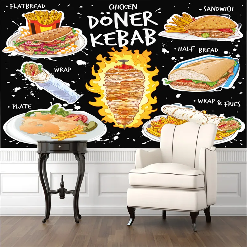 Пользовательские 3D Американский фаст-фуд настенная бумага курица Донер кебаб снэк-бар ресторан промышленный Декор Фон настенная бумага 3D