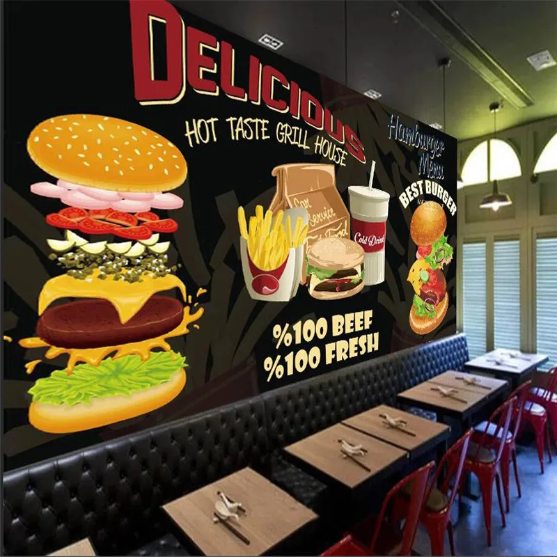 Современные ресторанные обои с гамбургерами, 3D доска, ручная роспи...
