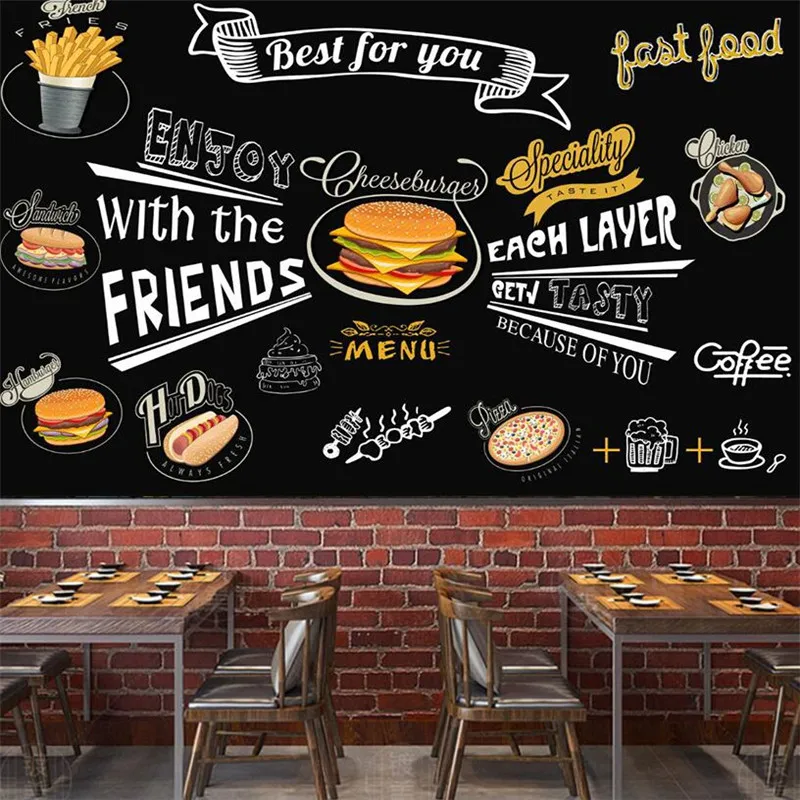 Пользовательские 3D Ручная роспись Доска Фастфуд фон обои Гамбург кофе западный ресторан украшение обои