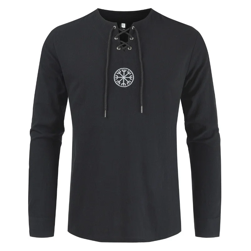 Мужская хлопковая рубашка с длинным рукавом, с V-образным вырезом
