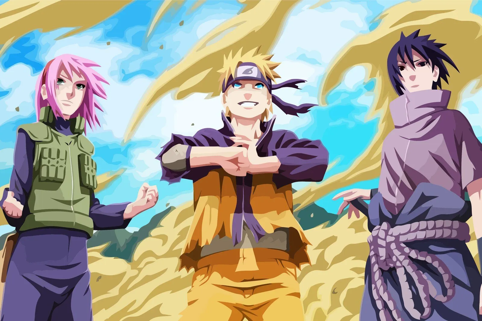 Картина по номерам на холсте набор для рисования аниме Наруто Узумаки Саске Учиха и Сакура Харуно - 1996 60X40