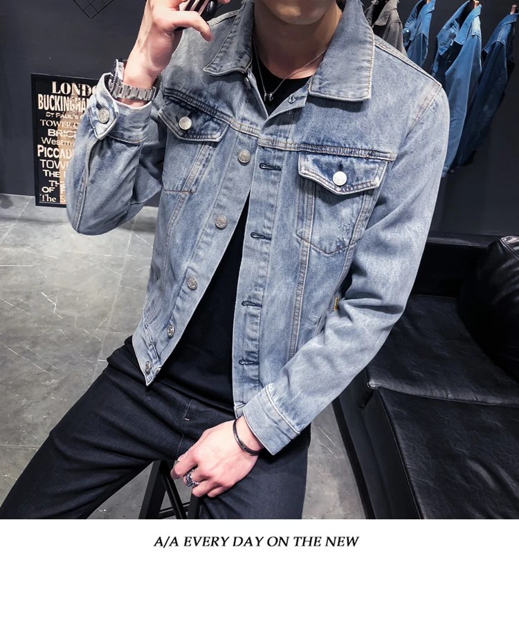 Мужская джинсовая куртка с дырками, базовая мотоциклетная куртка в ...