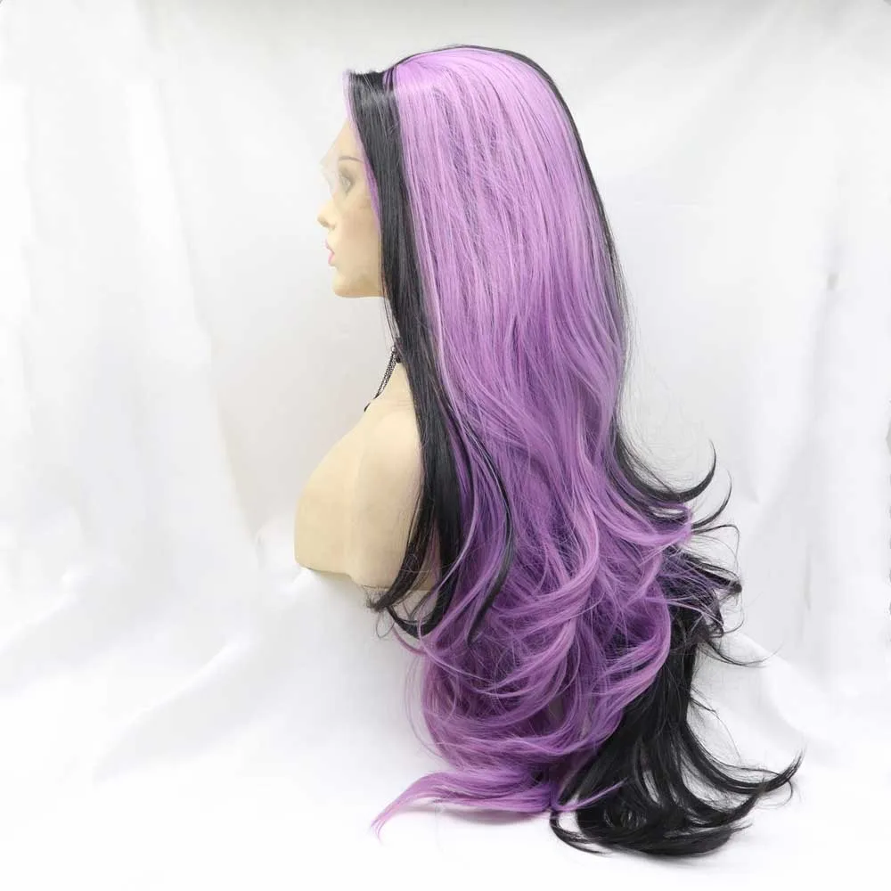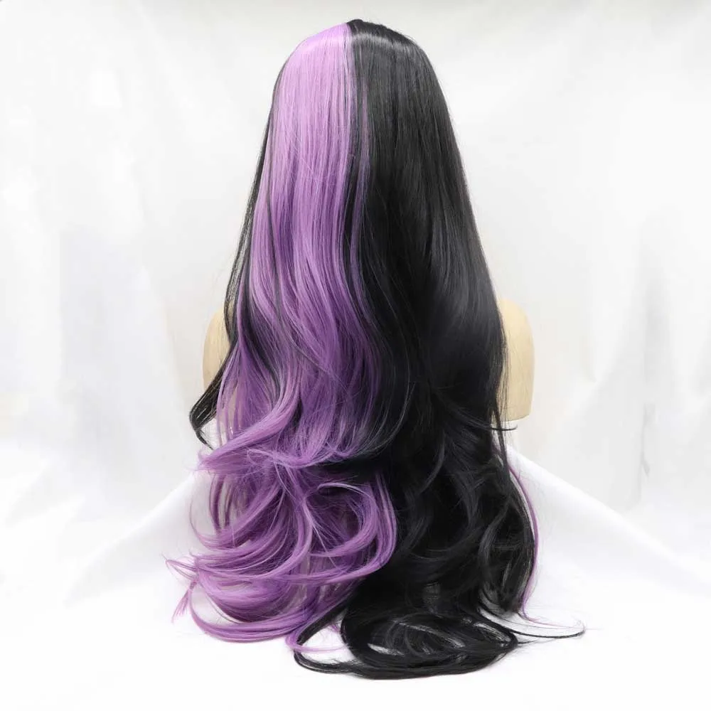 Женский синтетический парик с наполовину фиолетовыми и черными волосами, термостойкий