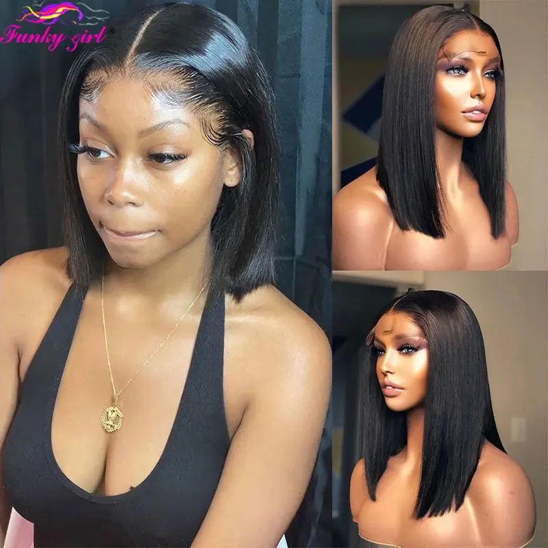 Короткий парик Боб, прямой парик из человеческих волос на сетке спереди 13x1 T, парики на сетке, прозрачные парики на сетке спереди для женщин, бразильские волосы Remy