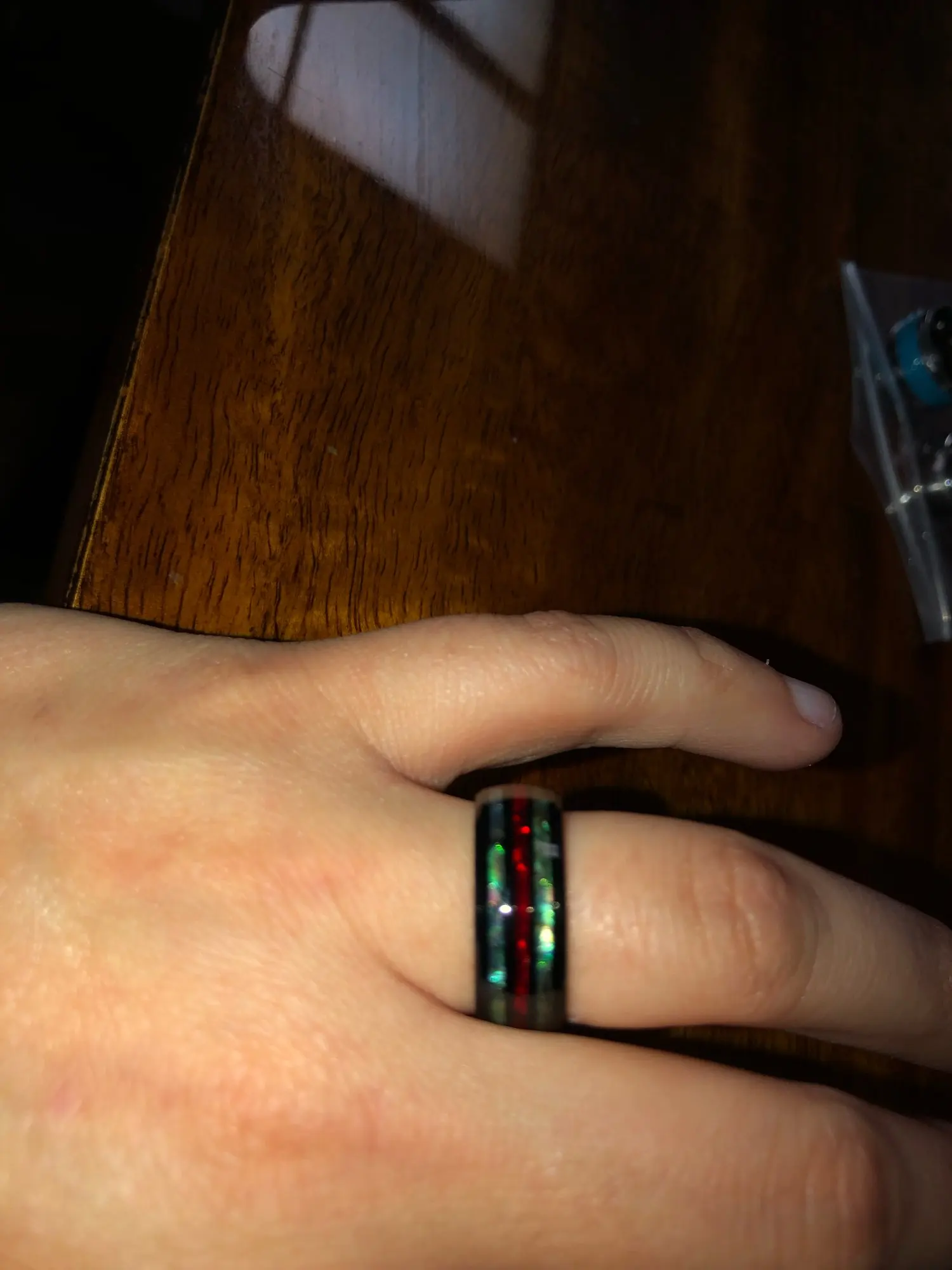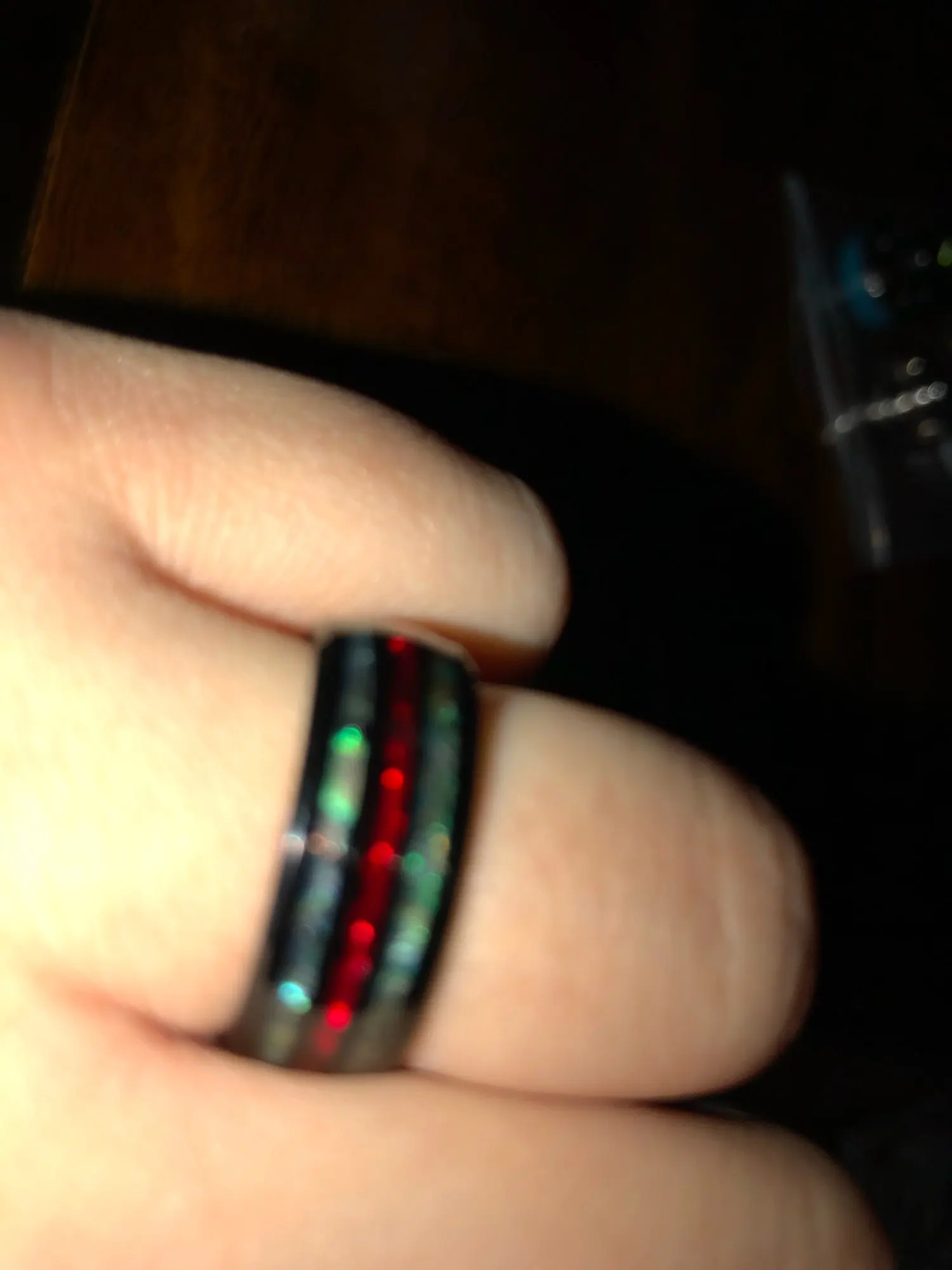 la bague rouge ressort très bien ,bon article un peu grande mais bien je recommanderai chez se vendeur