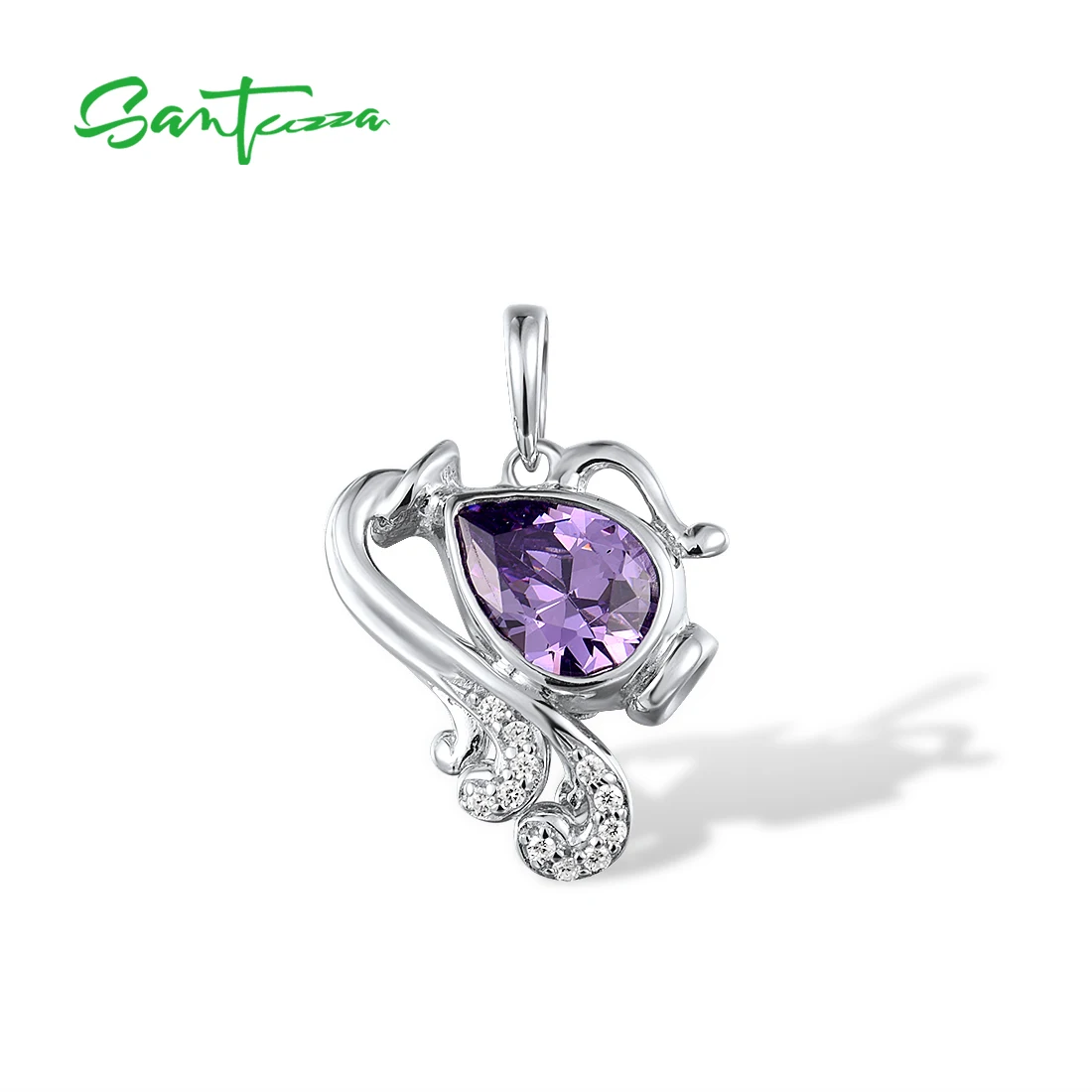 Женский кулон SANTUZZA, из серебра 925 пробы с фиолетовым аметистом и белым кубическим цирконием, 12 созвездий зодиака, Изящные Ювелирные украшения
