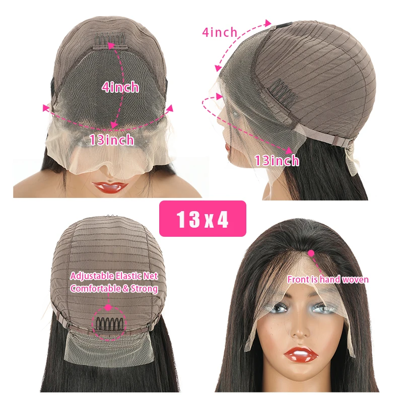 Парик из натуральных бразильских прямых волос, 13X4, 180% HD, длинн...