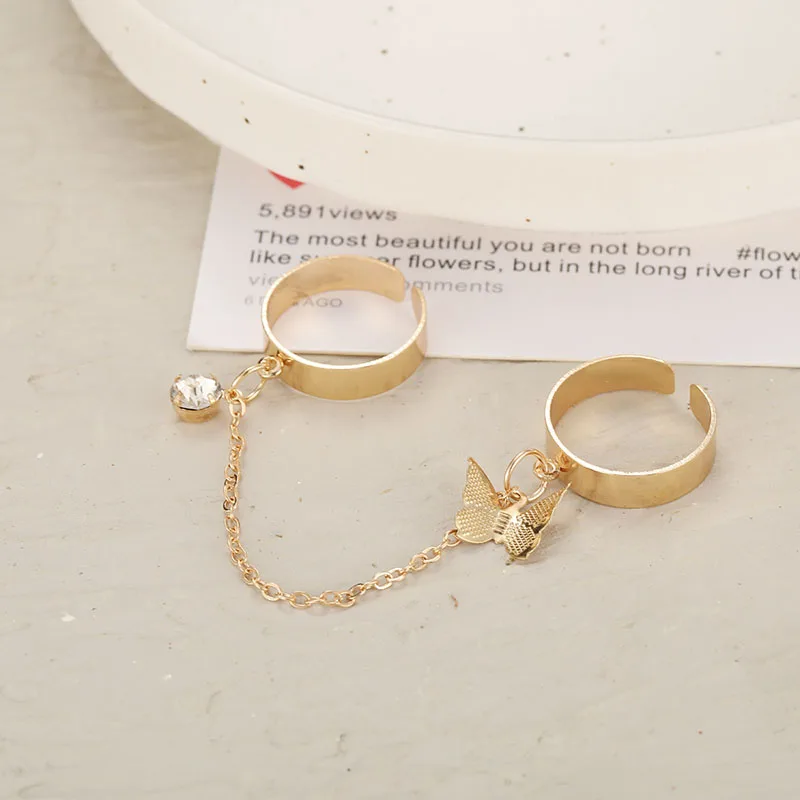 Личность Бабочка цепи кольца для женщин Винтаж блеск двойные кольца...