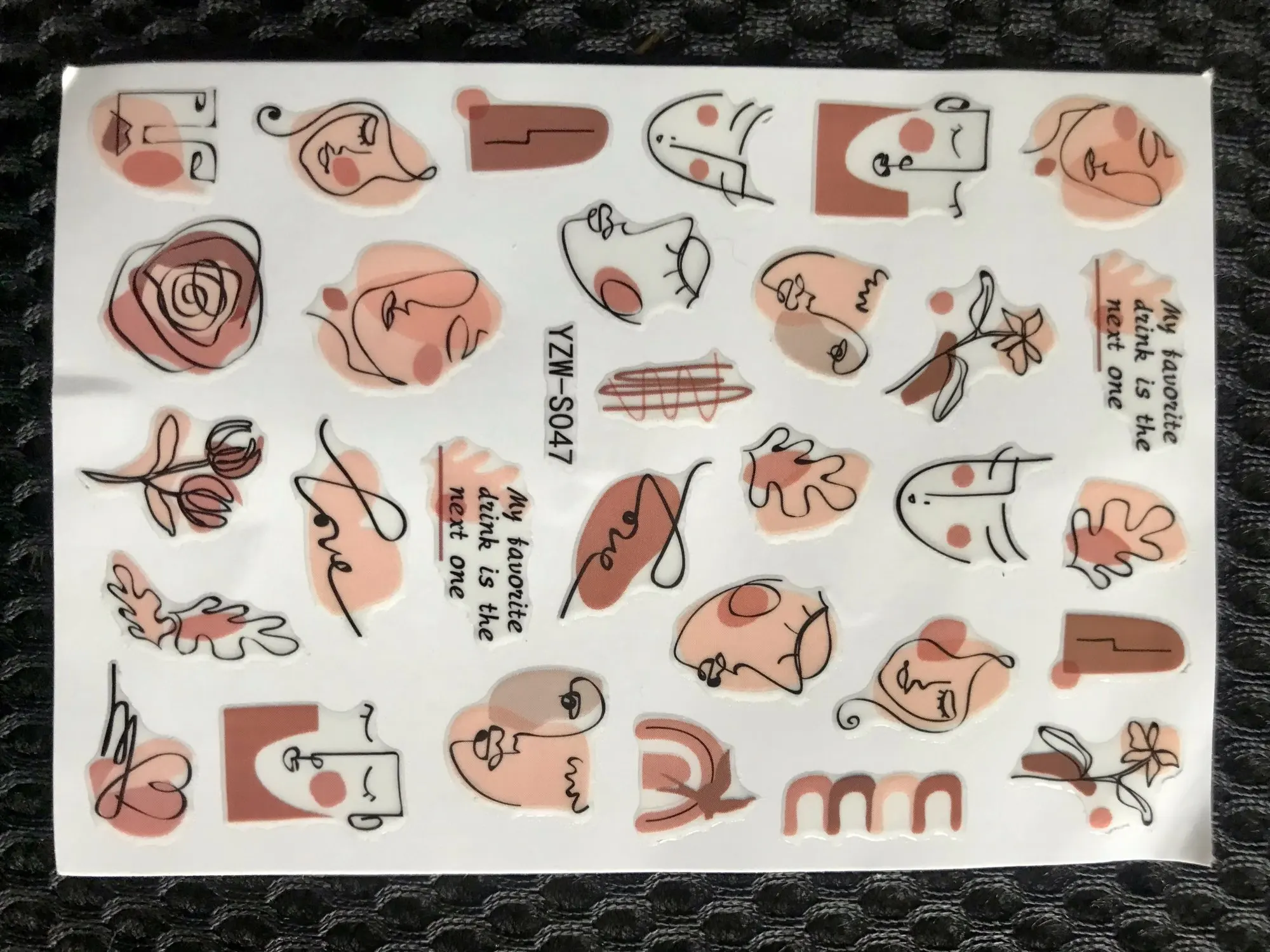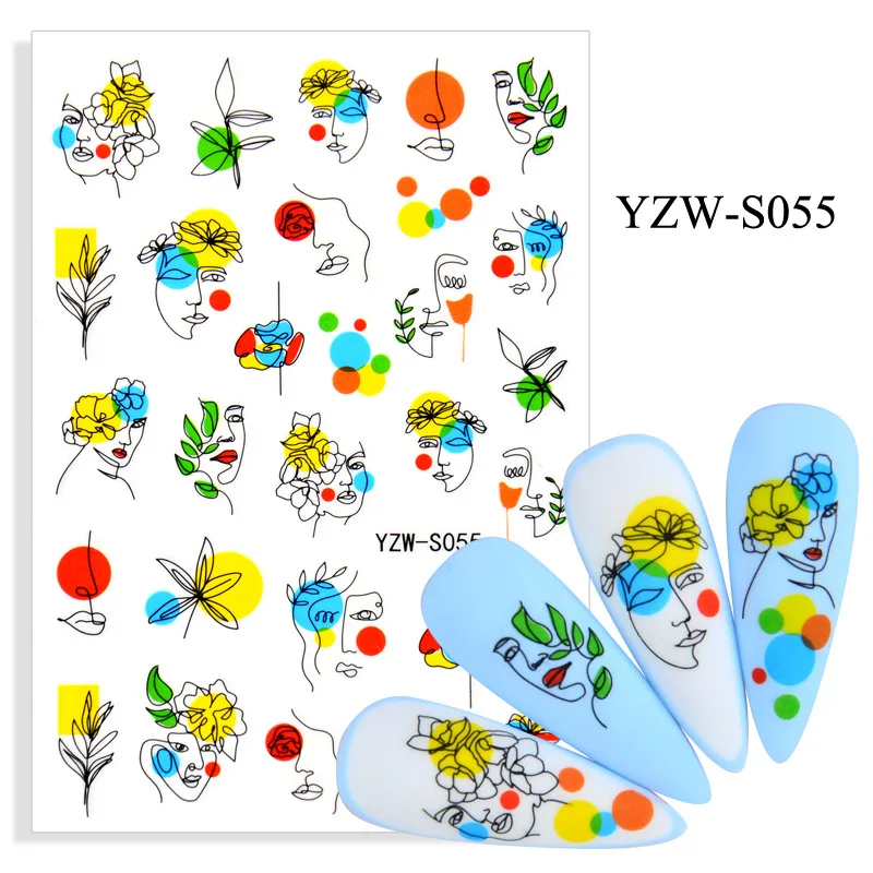 3D наклейки для ногтей, геометрические абстрактные линии, женское лицо, вдохновленные наклейки для ногтей, декор для ногтей, фольгированные слайдеры, маникюрные наклейки для ногтей