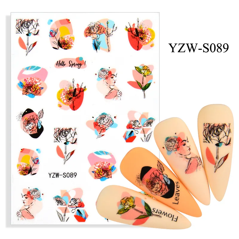 1 Лист Листья наклейки для ногтей цветы в виде геометрических фигур...